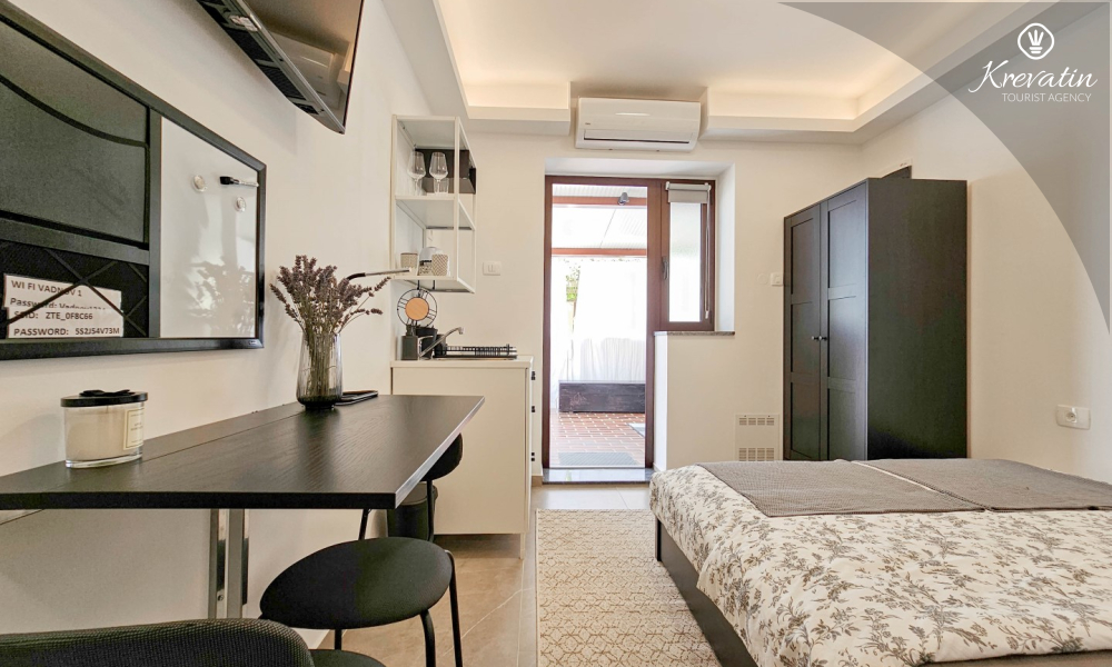 Studio apartman, samo 15m od mora, smješten u prekrasnom gradu Novigradu idealan je izbor za ljetni odmor.