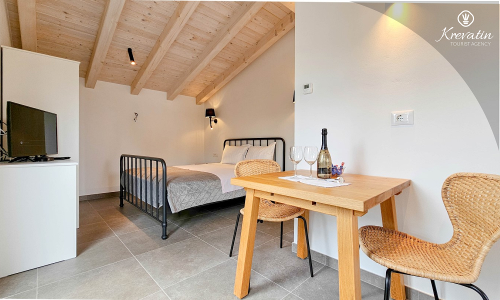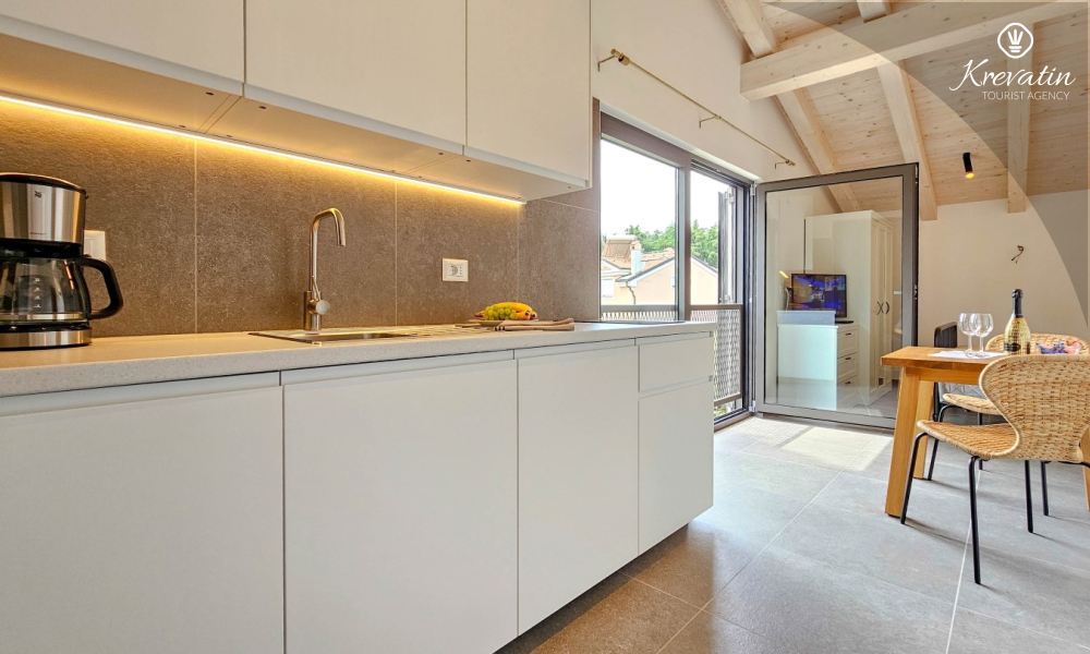 Smješten na drugom katu obiteljske kuće u mirnom dijelu Novigrada, ovaj moderno renovirani studio apartman idealan je izbor za parove koji žele spoj mira, udobnosti i mediteranskog ugođaja.