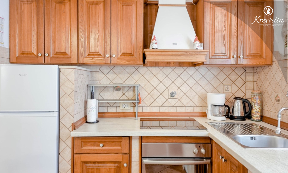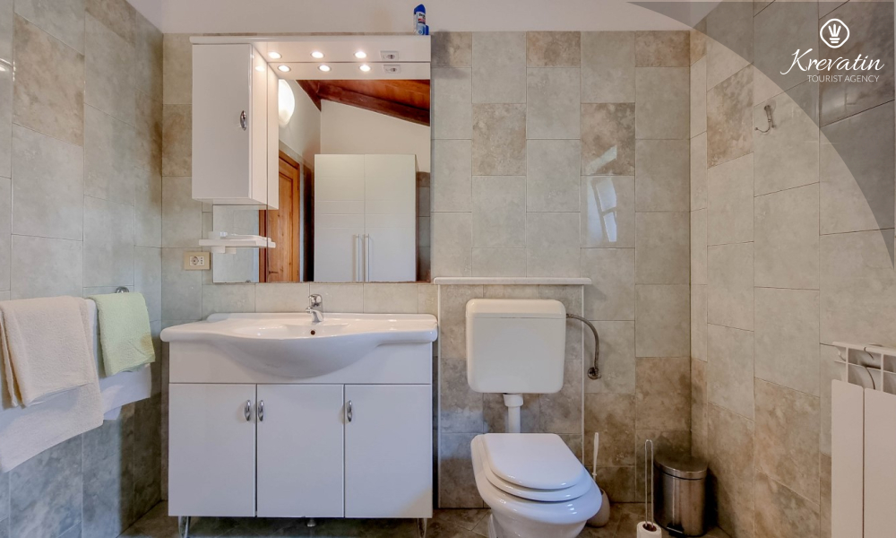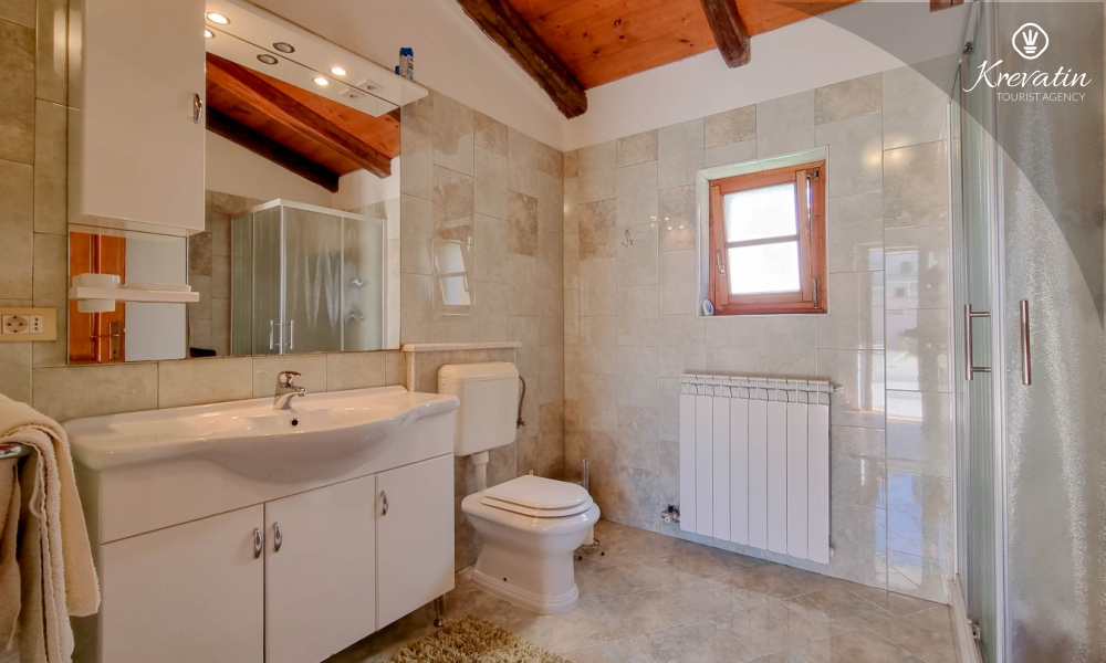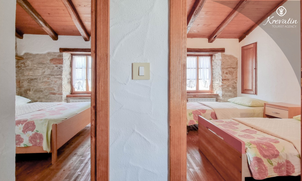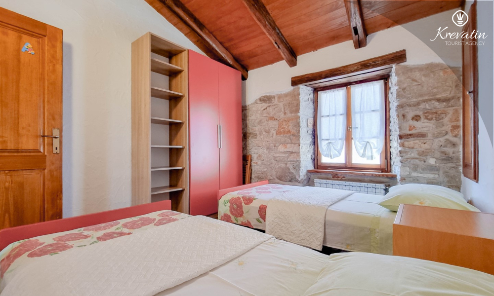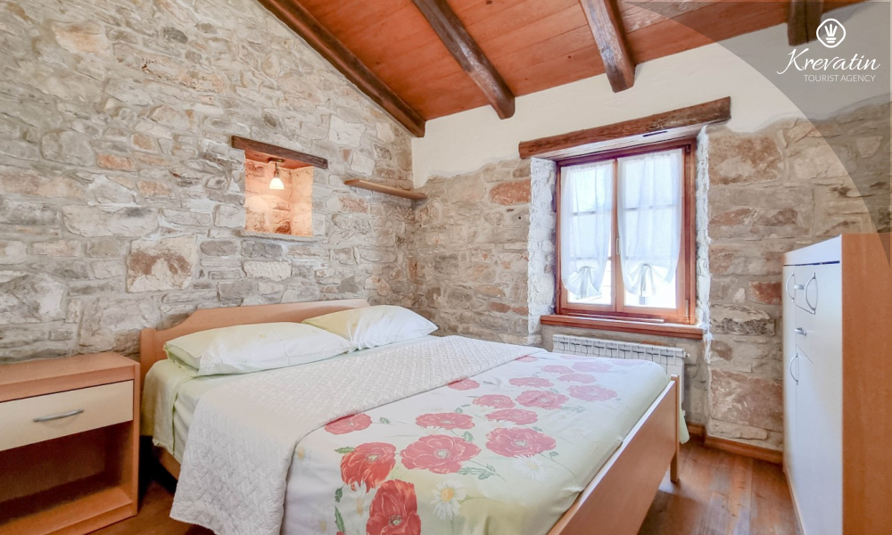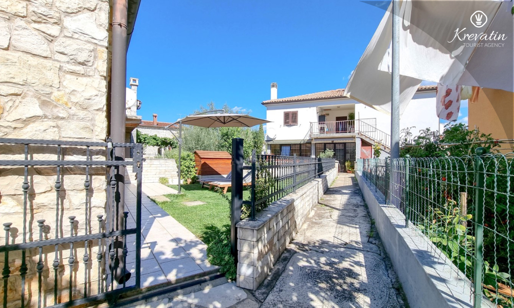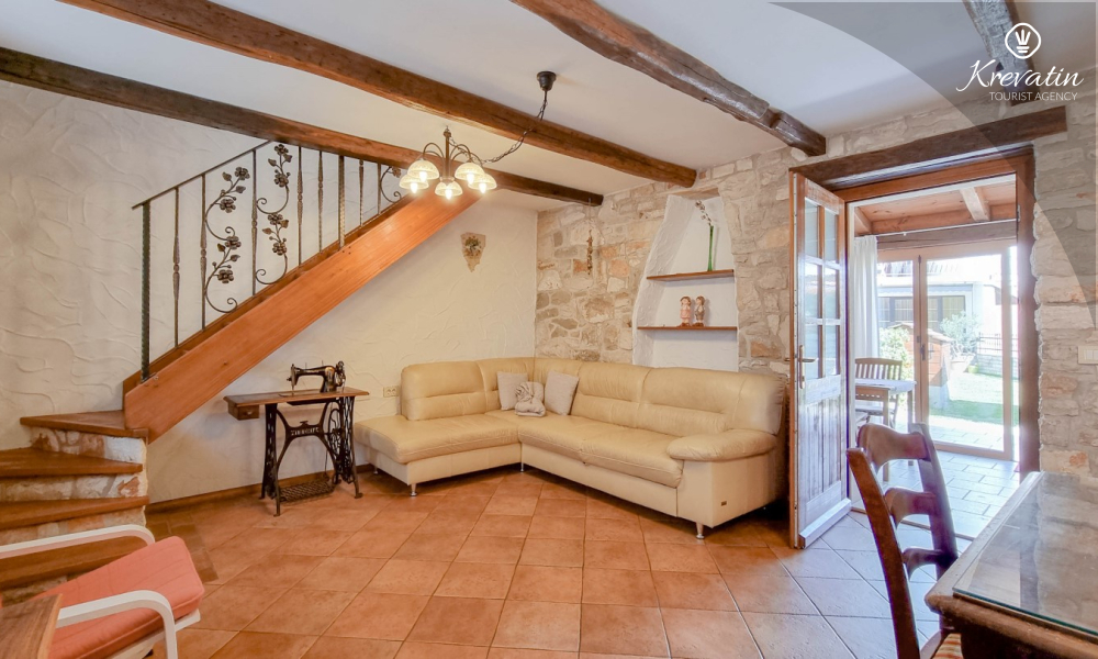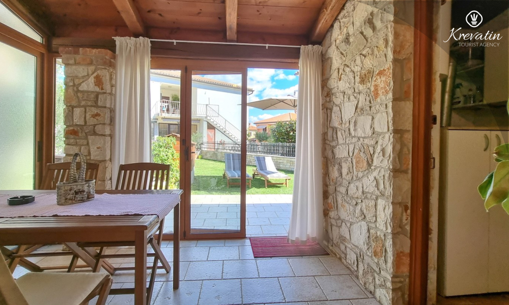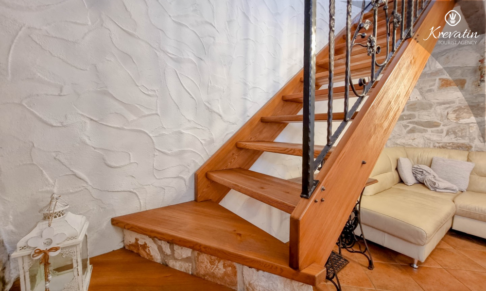 Na prvom katu nalaze se dvije spavaće sobe. U prizemlju vas dočekuje prostrani dnevni boravak, kuhinja sa svim potrebnim sadržajima te praktična kupaonica. Prostrana natkrivena terasa sa stolom i stolicama i okružena prekrasnim vrtom, idealna je za uživanje na otvorenom.