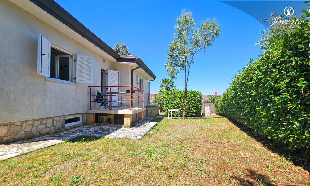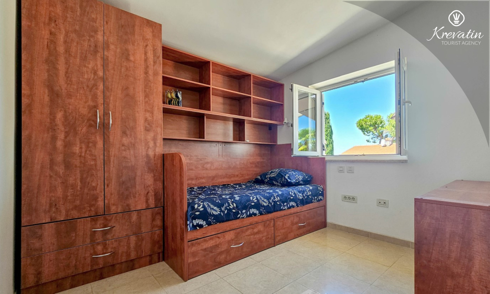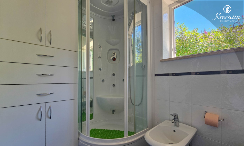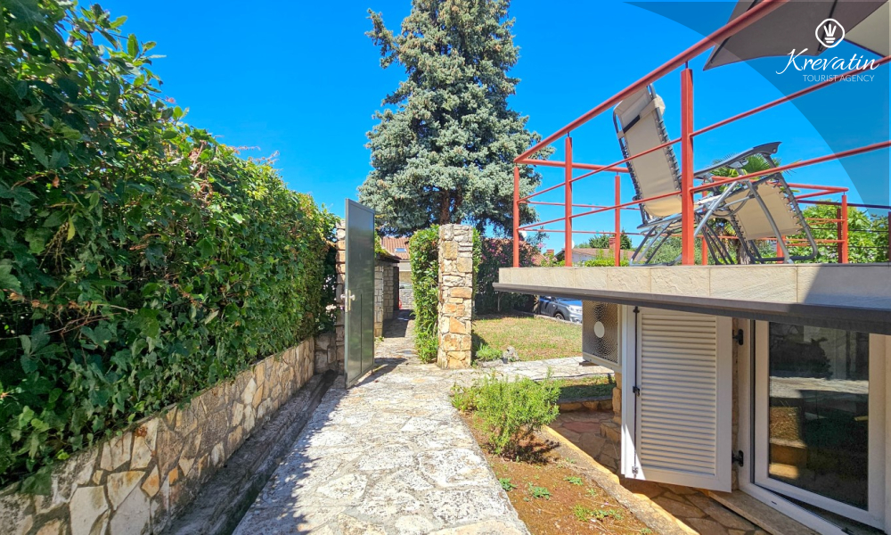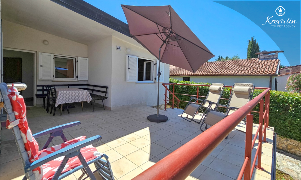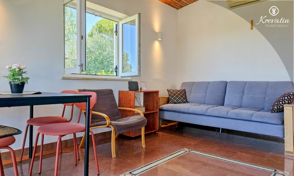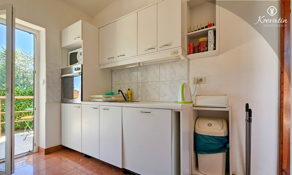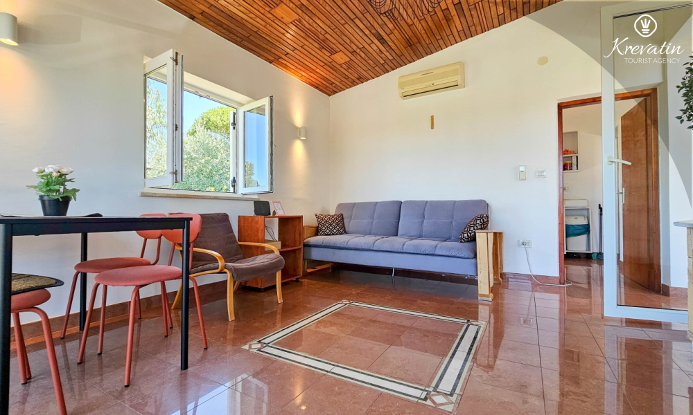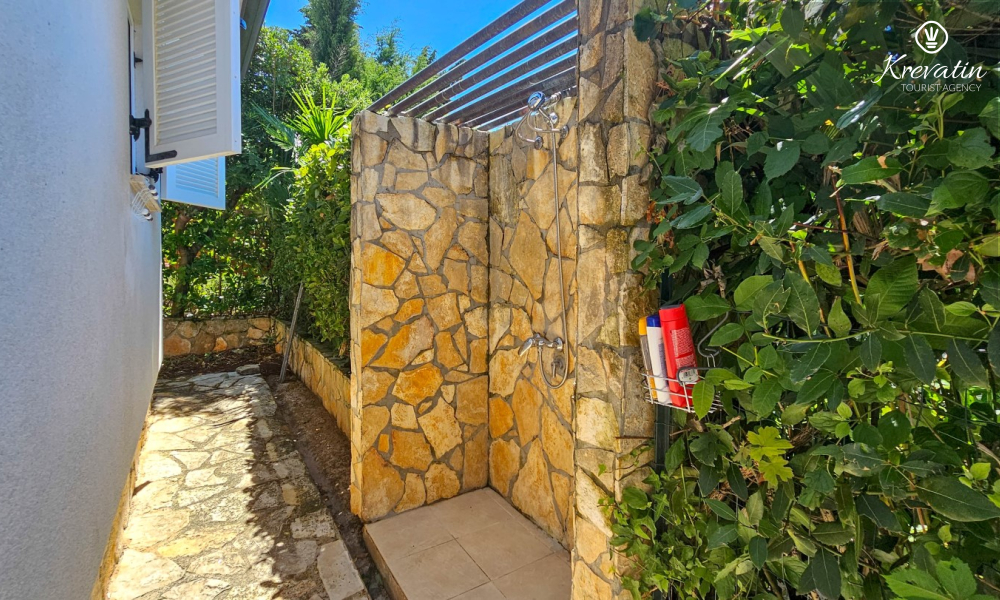 Uživajte u miru i privatnosti ovog smještaja s 3 spavaće sobe, praktičnim kupatilom i ugodnim dnevnim boravakom s pogledom na vrt i zelenilo. Gostima je na raspolaganju kuhinja opremljena osnovnim stvarima te prostrana terasa s prostorom za sjedenje i ležaljkama, savršeno mjesto za uživanje u jutarnjoj kavi.