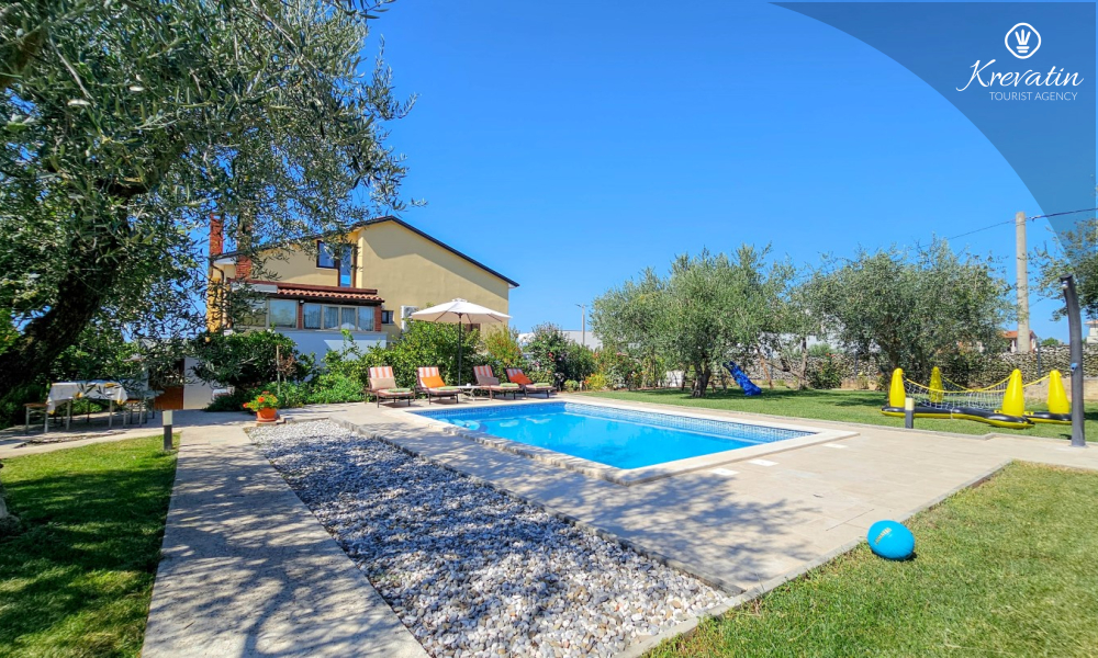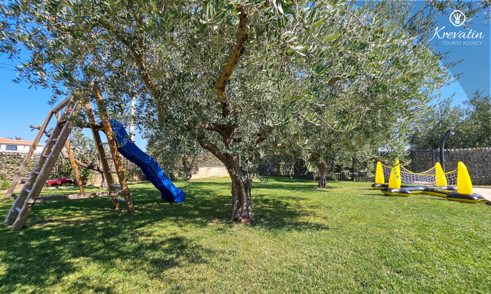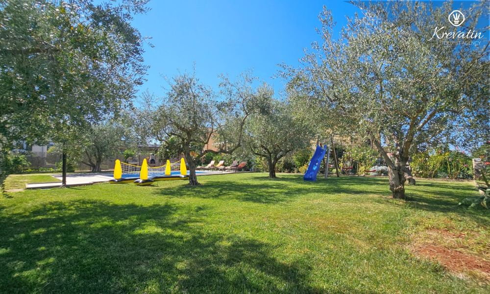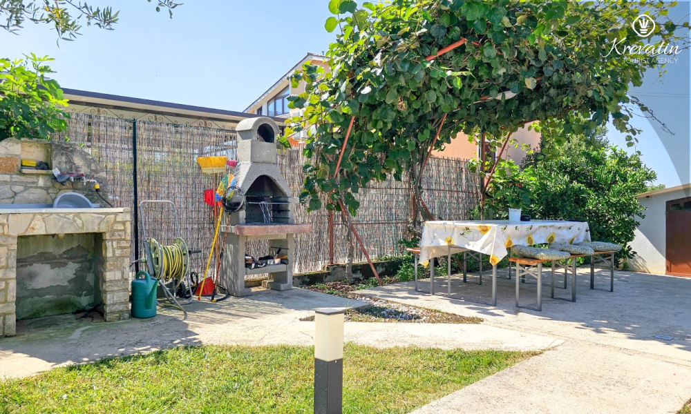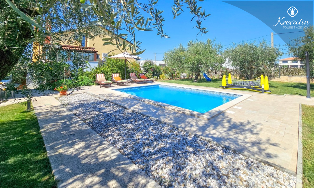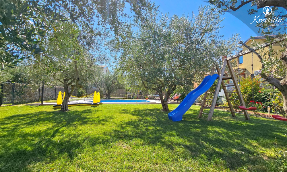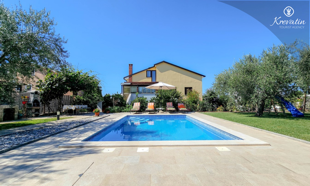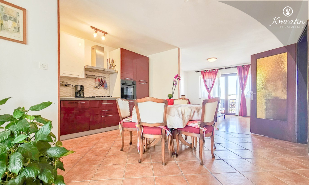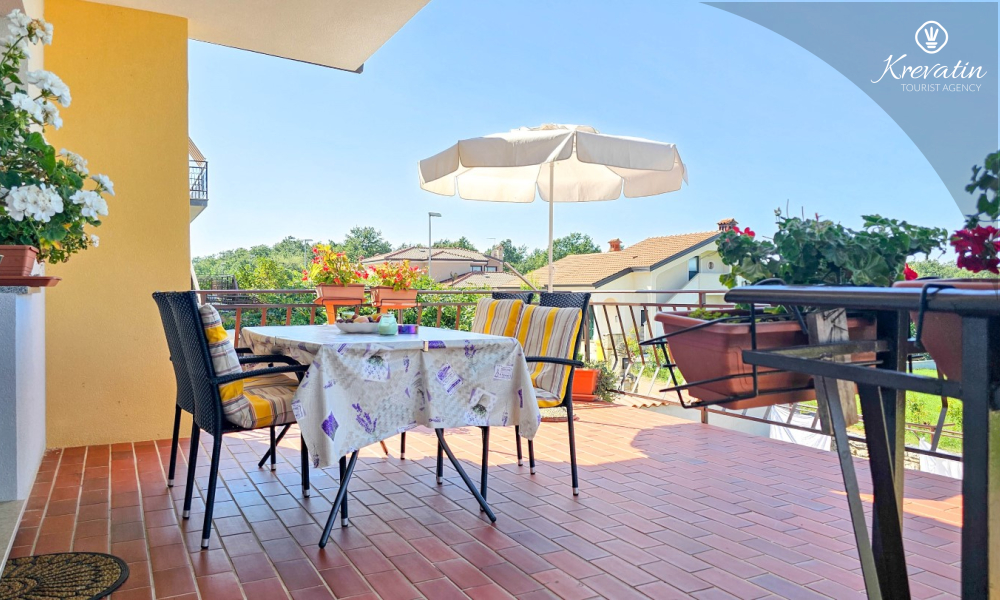 Na ulazu u apartman očekuje vas predsoblje s prostorom za sjedenje, idealno mjesto za opuštanje. Dnevni boravak povezan s prostranom kuhinjom ima izlaz na balkon s prekrasnim pogledom na okolno mjesto. Kuhinja je opremljena svim osnovnim stvarima za pripremu jednostavnih obroka. Apartman ima 2 udobne spavaće sobe te kupatilo s tušem. Također, tu je i zaseban WC s umivaonikom za dodatnu udobnost. Dva dodatna mjesta za spavanje nalaze se u dnevnom boravku na udobnom kauču.Na raspolaganju je veliki vrt s privatnim bazenom i ležaljkama te prostor za sjedenje gdje možete uživati na otvorenom. Parkirno mjesto osigurano je u dvorištu.