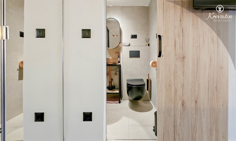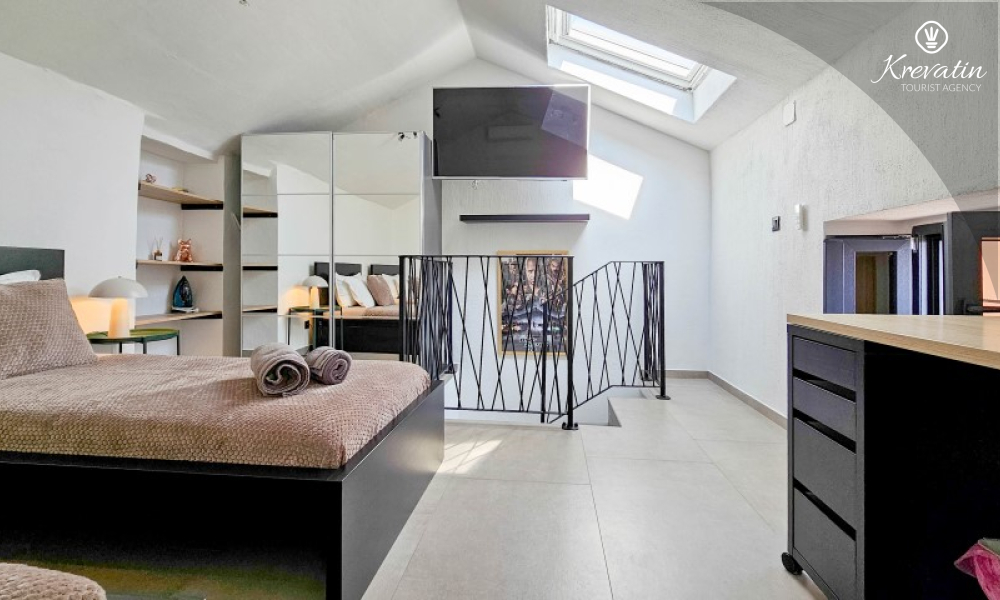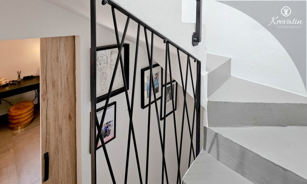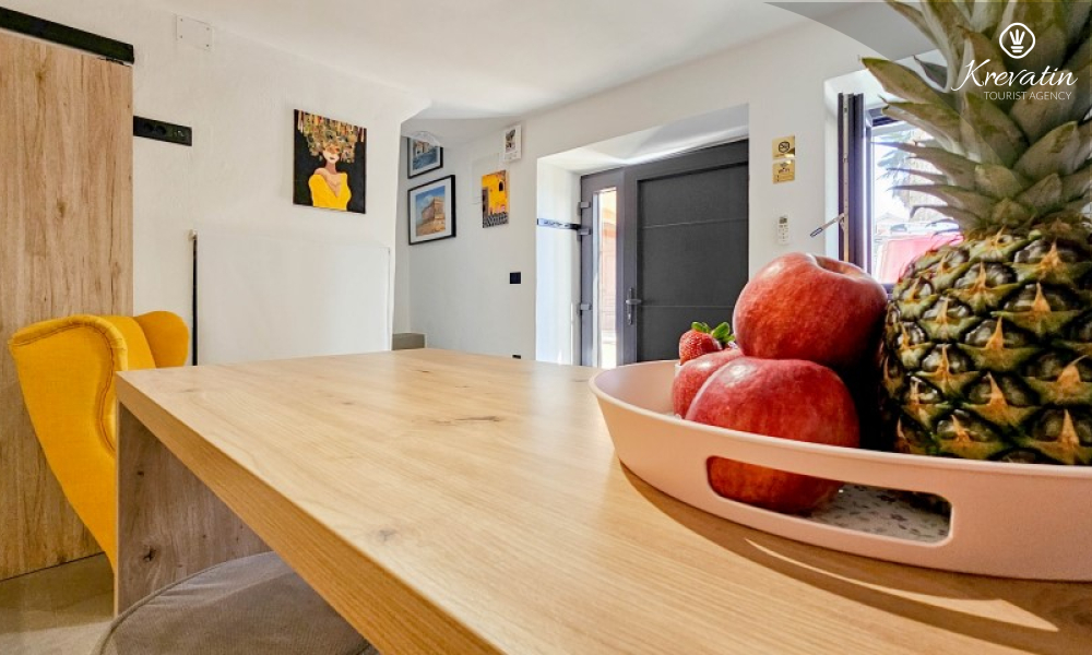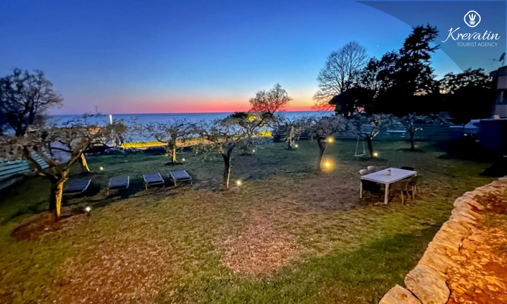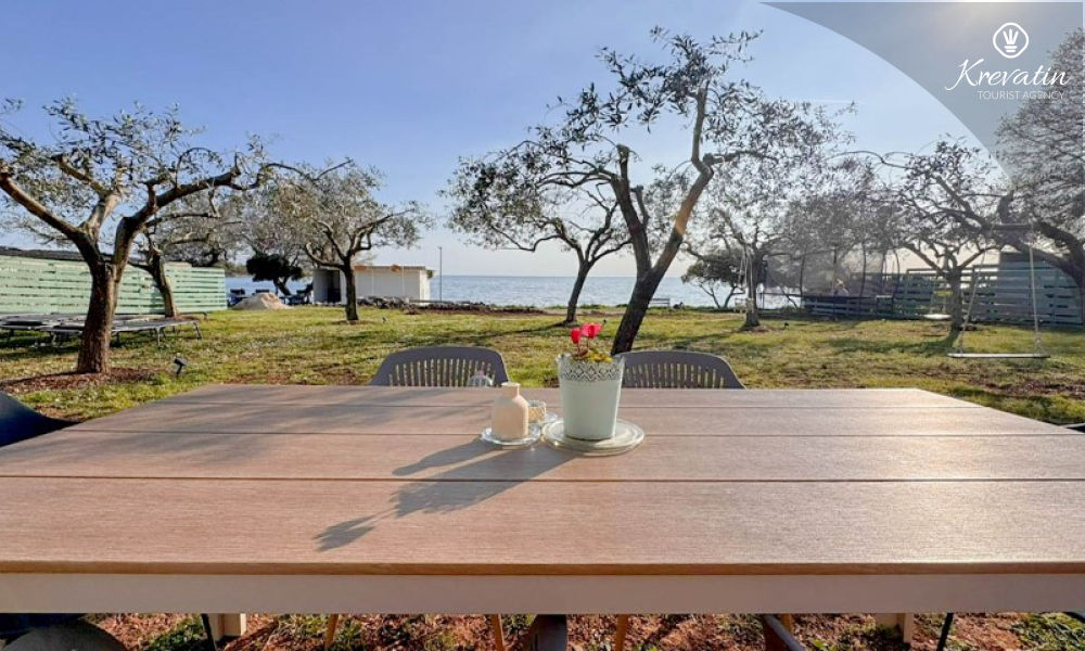 Poseban doživljaj ovog smještaja pruža prostrani vrt uz more, smješten preko ceste, gdje gosti mogu uživati u miru, zelenilu i mediteranskom ambijentu. Okružen maslinama i opremljen vrtnim namještajem i roštiljem, ovaj prostor nudi idealno mjesto za druženje i opuštanje na otvorenom, uz blizinu i miris mora koji se osjeća u svakom trenutku.