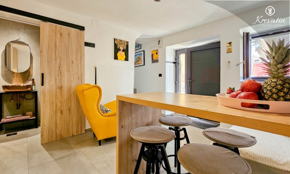 Ova elegantna kuća u nizu, smještena u samom srcu Lovrečice i svega 100 m od mora, prostire se na tri etaže i idealan je spoj udobnosti, privatnosti i mediteranskog ugođaja za do 4 osobe.