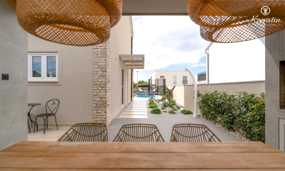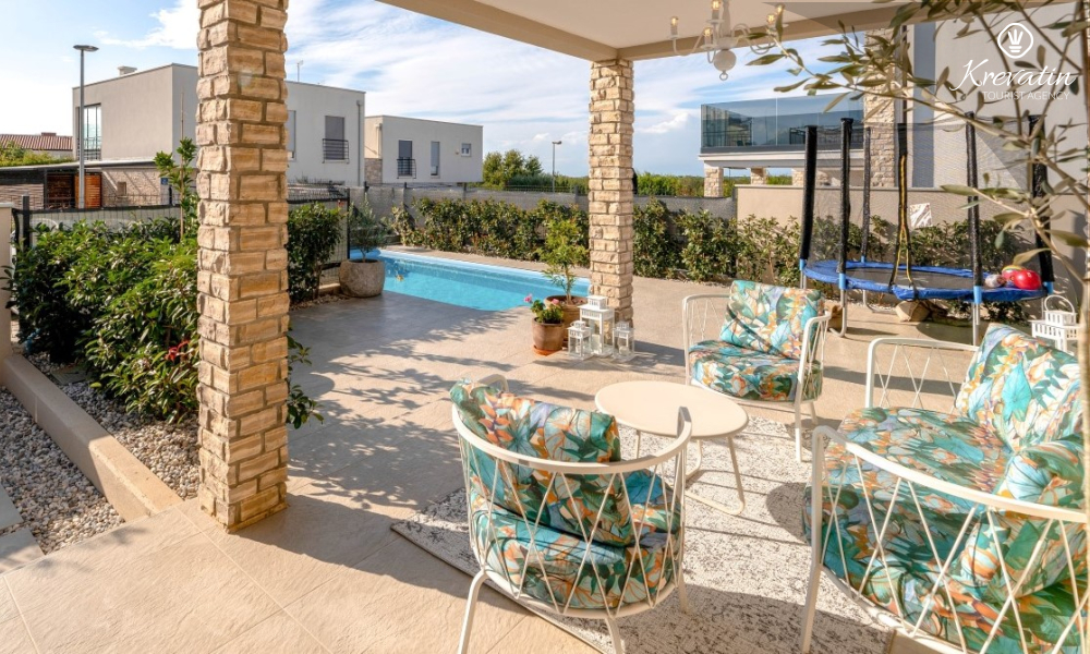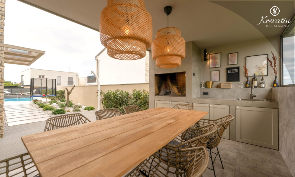 Vila je opremljena svim potrebnim sadržajima kako bi vaš boravak bio udoban i opuštajući. Uživajte u osvježavajućem bazenu i opustite se na ležaljkama oko njega. Za ljubitelje roštilja, dostupan je roštilj, gdje možete pripremiti ukusne obroke za svoje društvo. Djeca će uživati u trampolinu u dvorištu, dok će ljubitelji kuhanja moći koristiti ljetnu kuhinju za pripremu obroka na otvorenom.