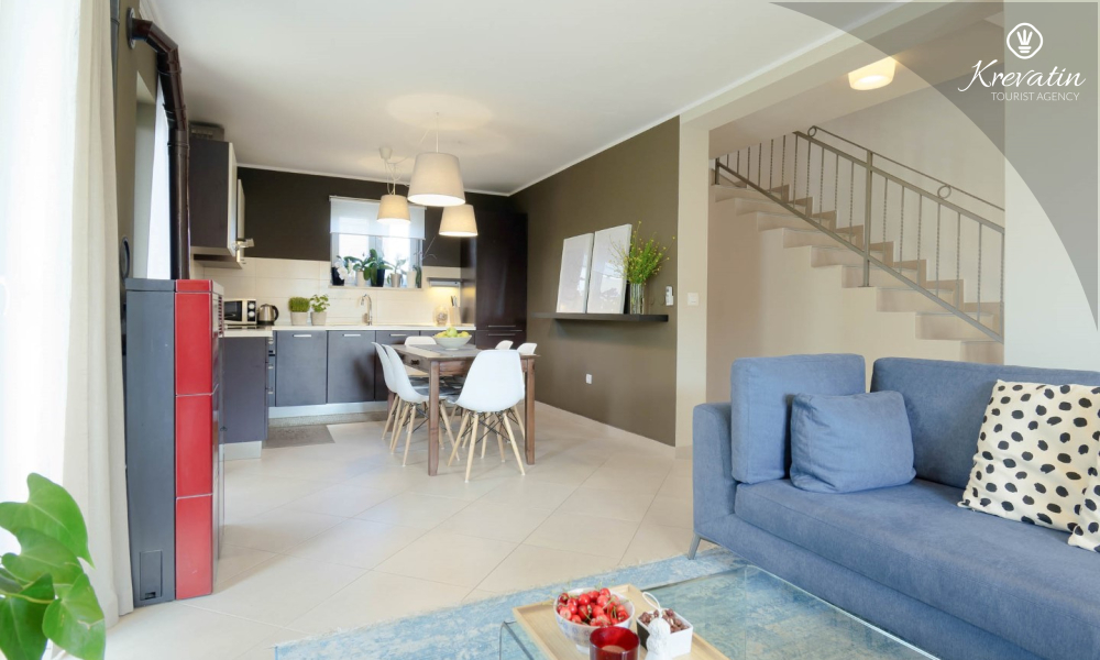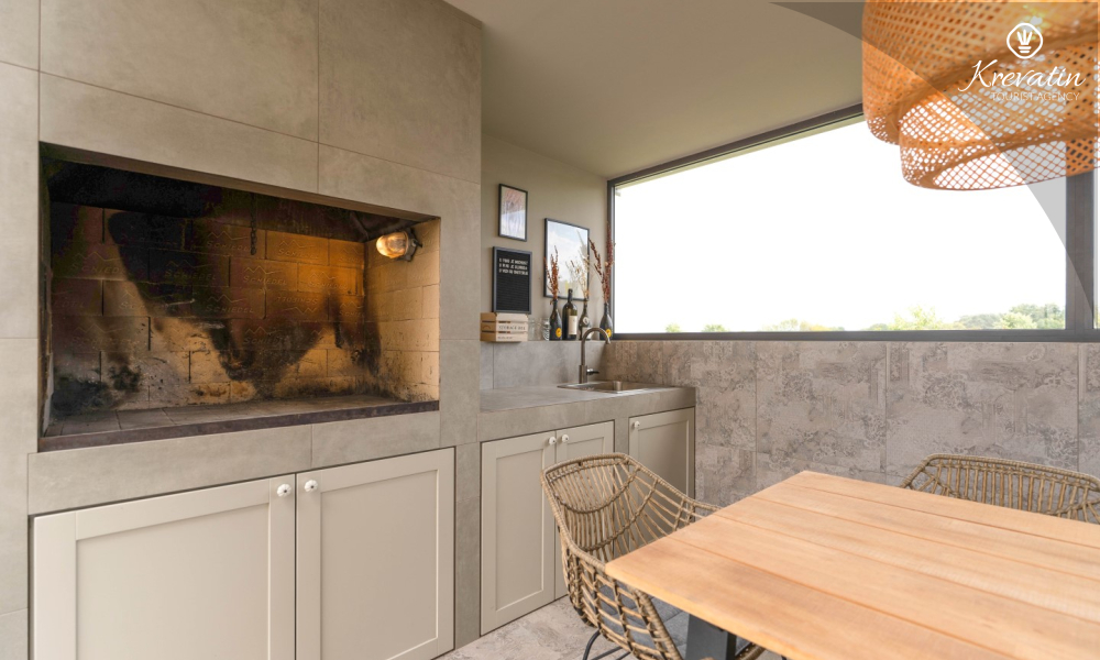 Unutar vile nalaze se potpuno opremljena kuhinja i prostrani dnevni boravak, gdje možete opušteno provesti vrijeme s obitelji ili prijateljima. Vila također ima tri udobne spavaće sobe i dva moderna kupatila, pružajući vam potpunu privatnost i udobnost tijekom vašeg boravka.