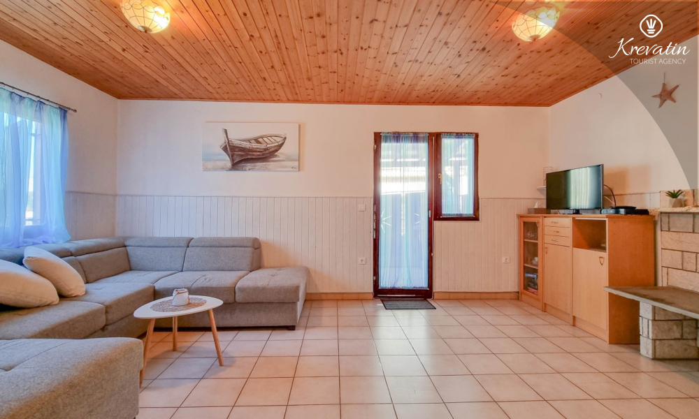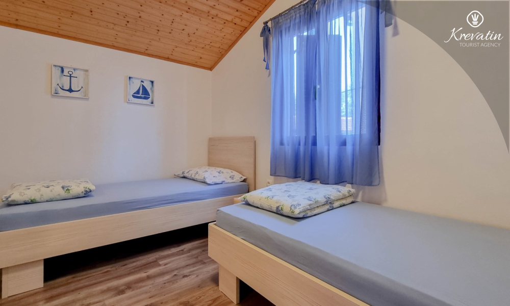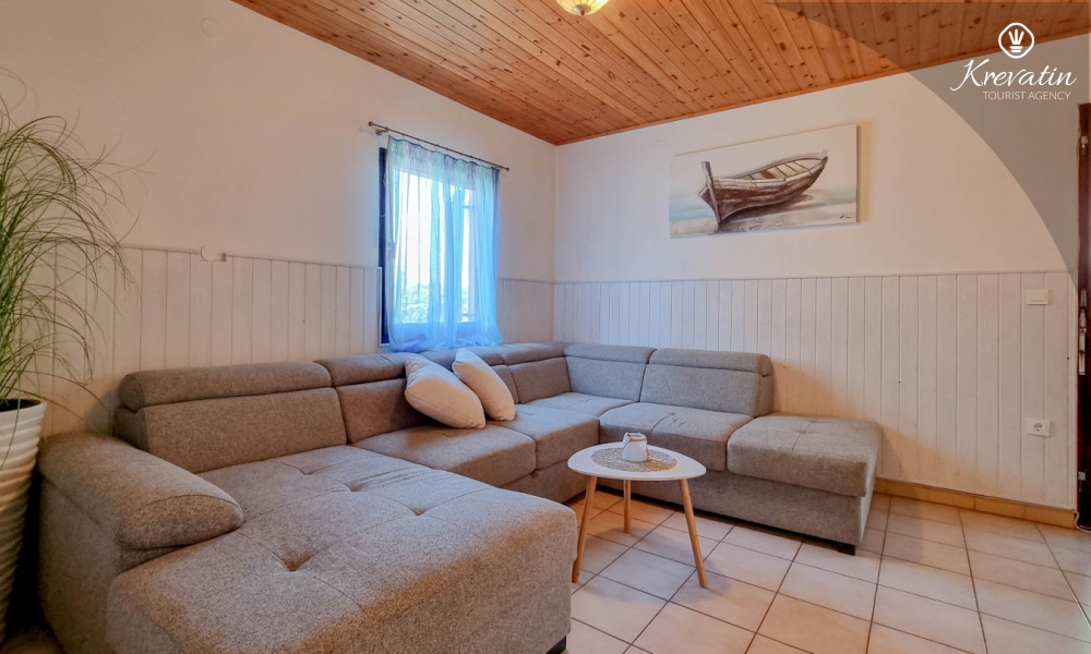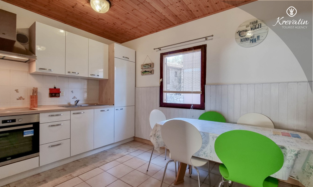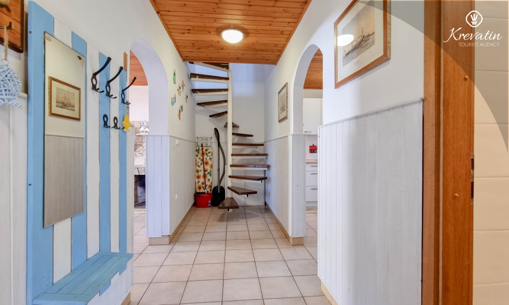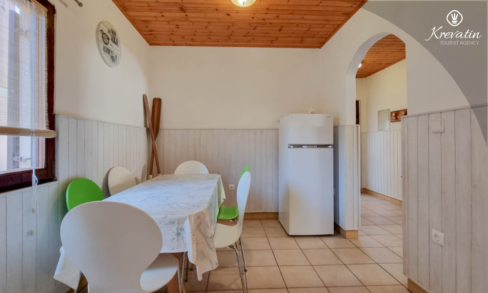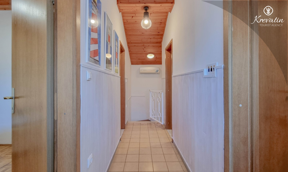 U prizemlju se nalazi dnevni boravak, potpuno opremljena kuhinja s blagovaonicom te kupaonica. Na katu nalaze tri udobne spavaće sobe s bračnim krevetima i još jedna kupaonica, a na raspolaganju je i prostrana terasa s roštiljem