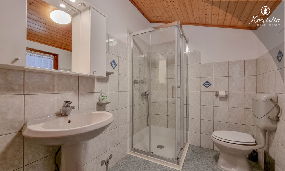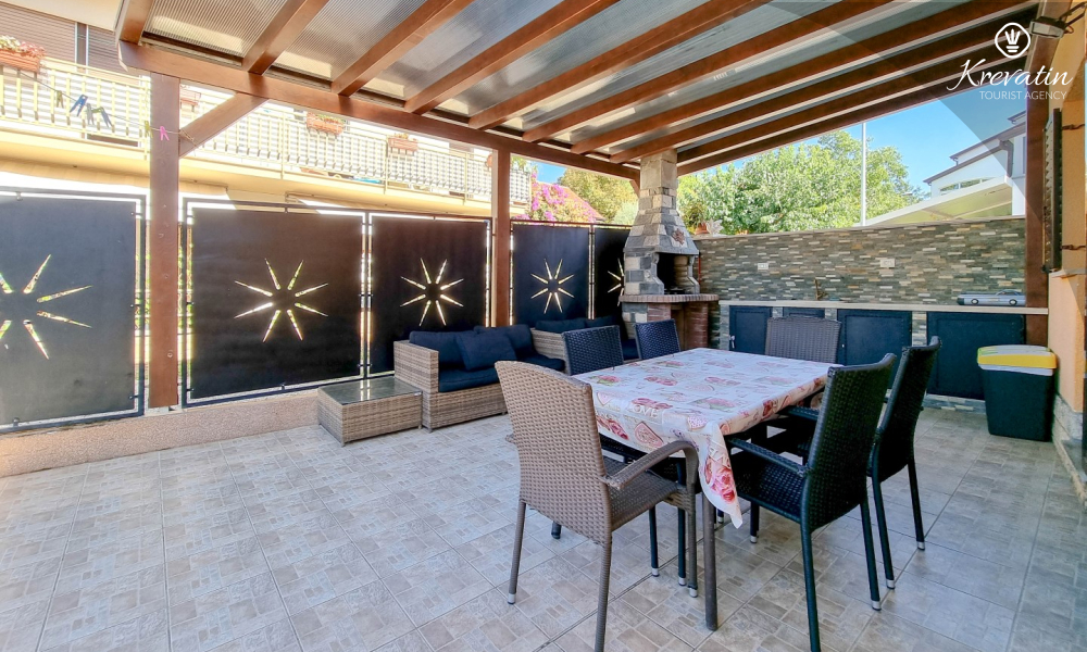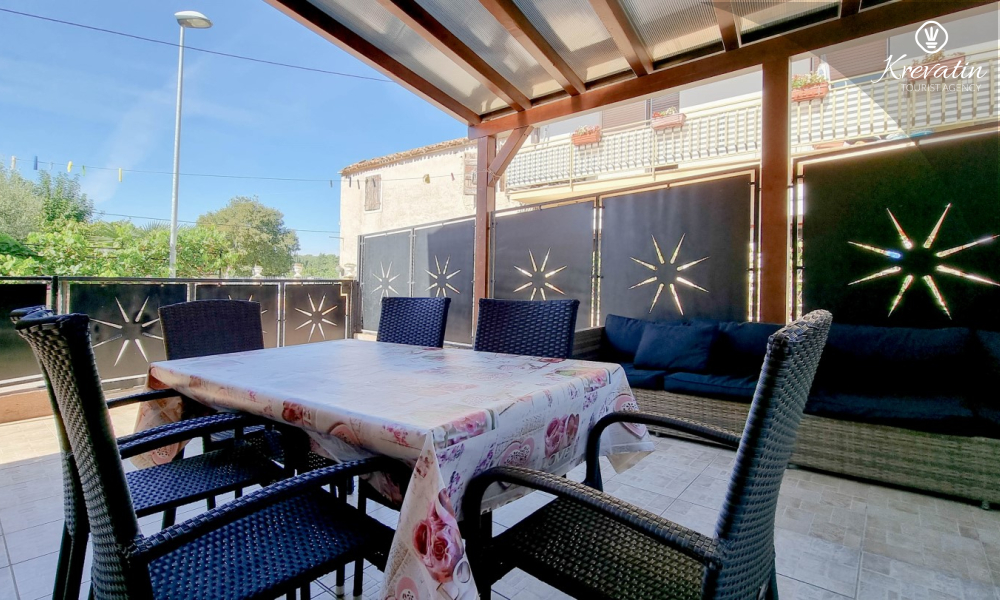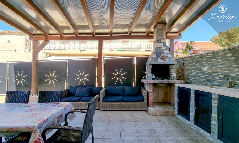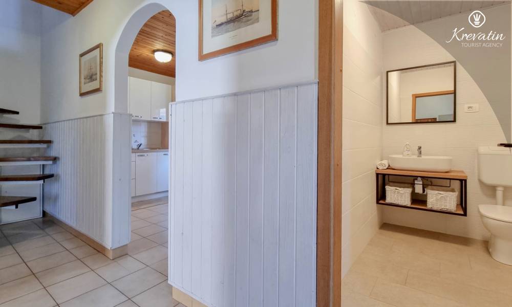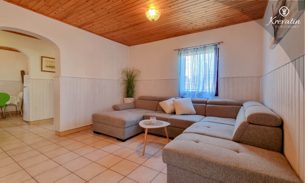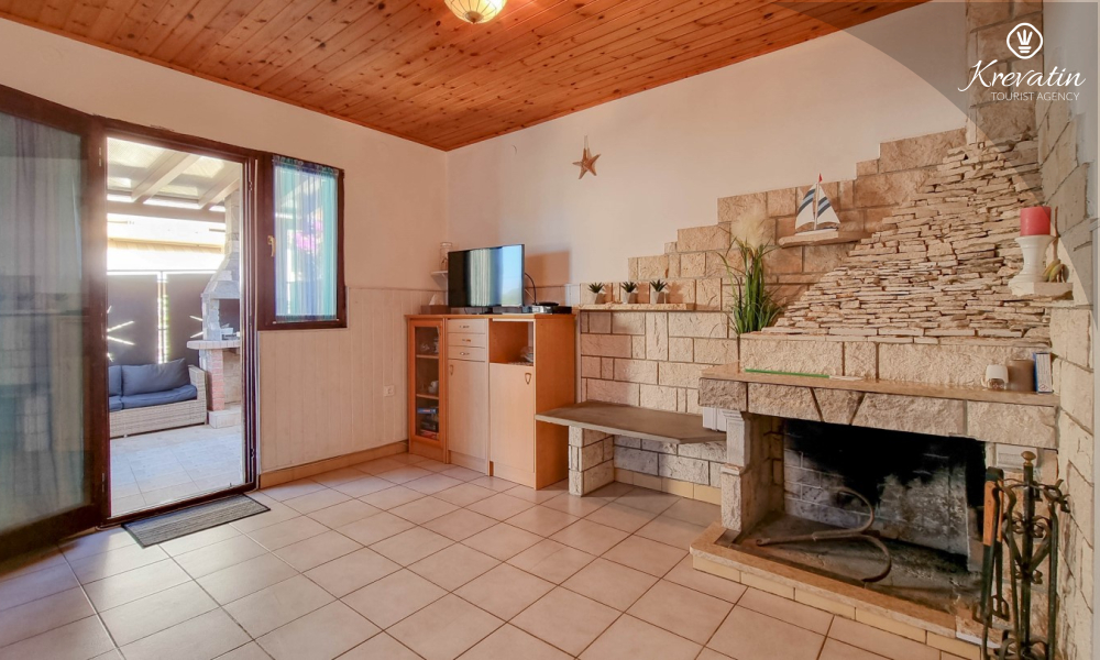 U prizemlju se nalazi dnevni boravak, potpuno opremljena kuhinja s blagovaonicom te kupaonica. Na katu nalaze tri udobne spavaće sobe s bračnim krevetima i još jedna kupaonica, a na raspolaganju je i prostrana terasa s roštiljem
