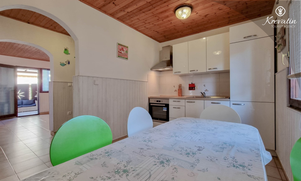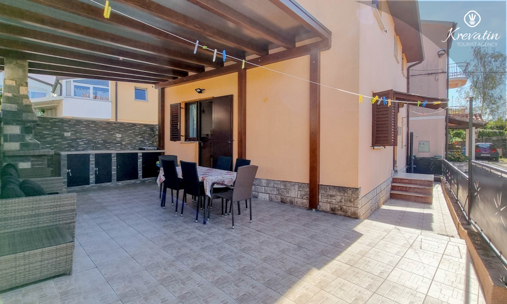 Samo nekoliko koraka od mora, ova prostrana kuća za odmor smještena u mirnom mjestu Sv. Ivan, kraj Lovrečice i Umaga, savršen je izbor za sve koji žele spojiti udobnost, privatnost i mediteranski ugođaj. Kuća se proteže na dva kata i prima do 6 osoba, što je čini idealnom za obitelji ili prijatelje.