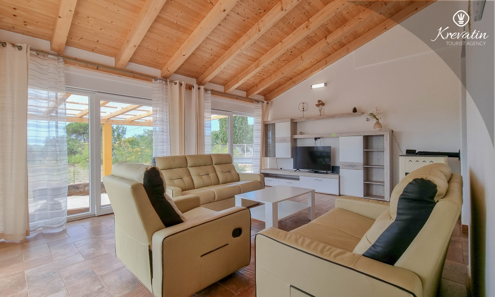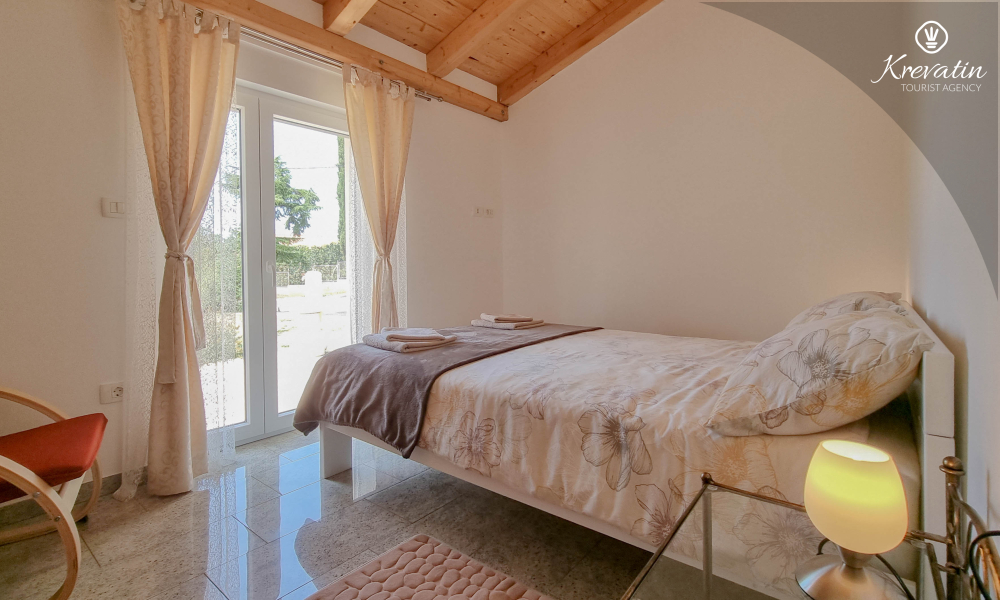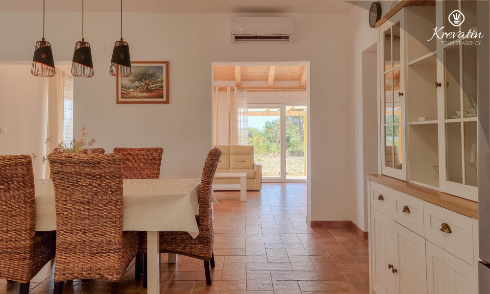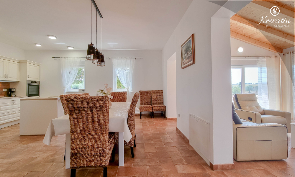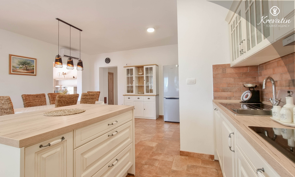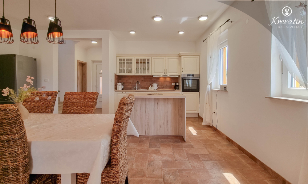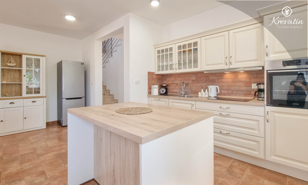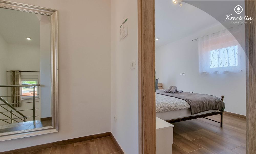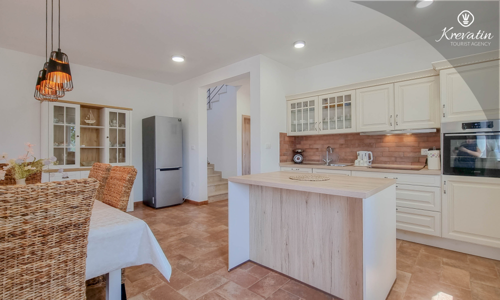 U prizemlju se nalazi prostrani dnevni boravak s blagovaonicom i kuhinjom, te dvije udobne spavaće sobe i kupaonica. Kuhinja je potpuno opremljena svim osnovnim stvarima. Na prvom katu su još dvije udobne spavaće sobe, svaka s vlastitom kupaonicom i klima uređajem. Na raspolaganju je i terasa s garniturom za sjedenje i pogledom na prostrani vrt okružen zelenilom.