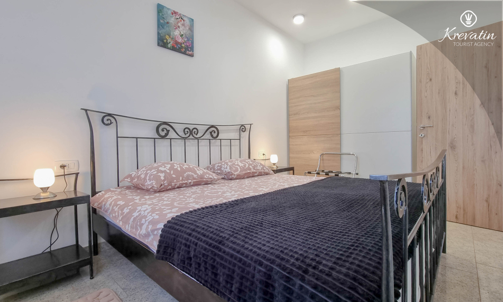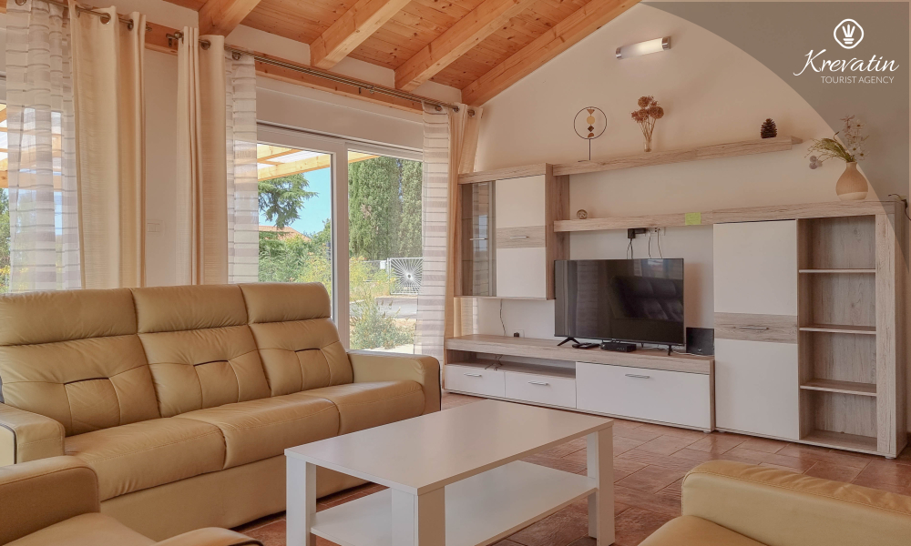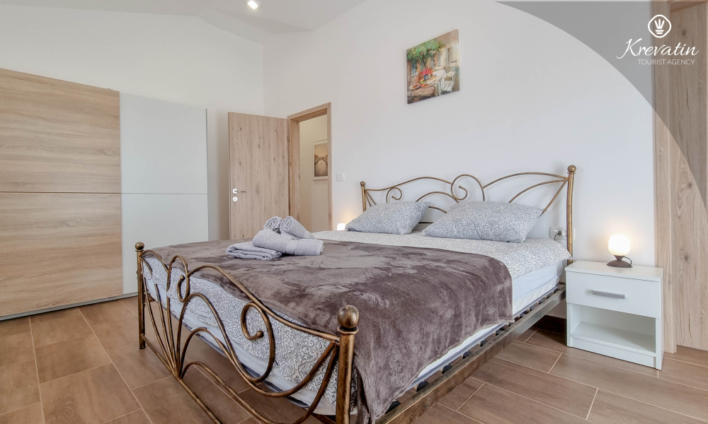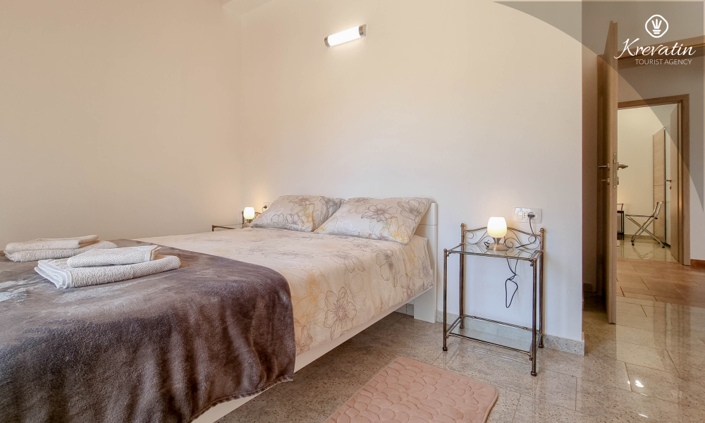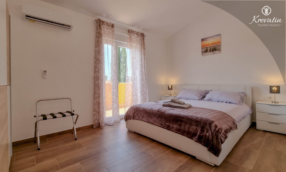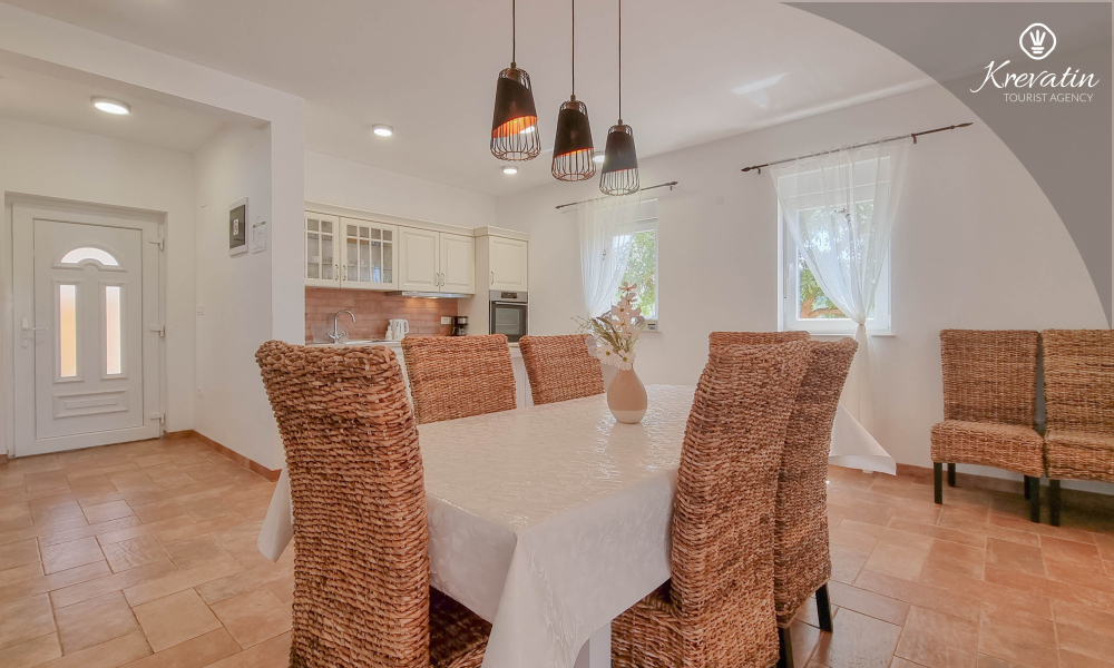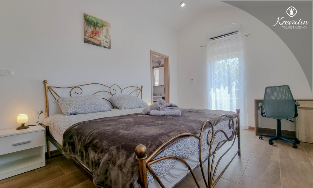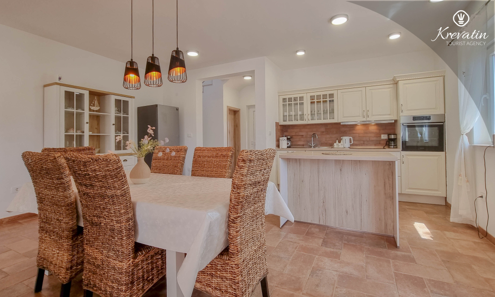 U prizemlju se nalazi prostrani dnevni boravak s blagovaonicom i kuhinjom, te dvije udobne spavaće sobe i kupaonica. Kuhinja je potpuno opremljena svim osnovnim stvarima. Na prvom katu su još dvije udobne spavaće sobe, svaka s vlastitom kupaonicom i klima uređajem. Na raspolaganju je i terasa s garniturom za sjedenje i pogledom na prostrani vrt okružen zelenilom.