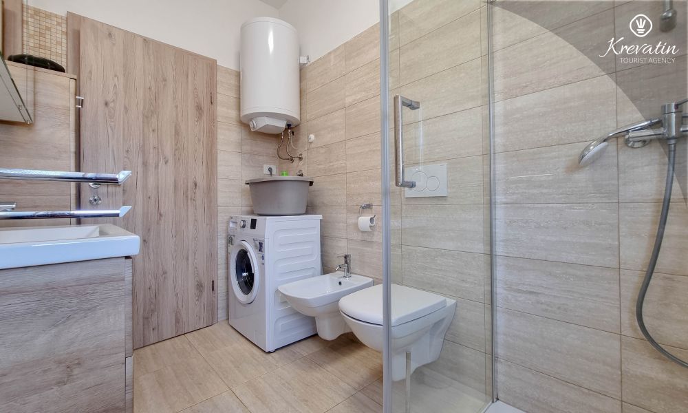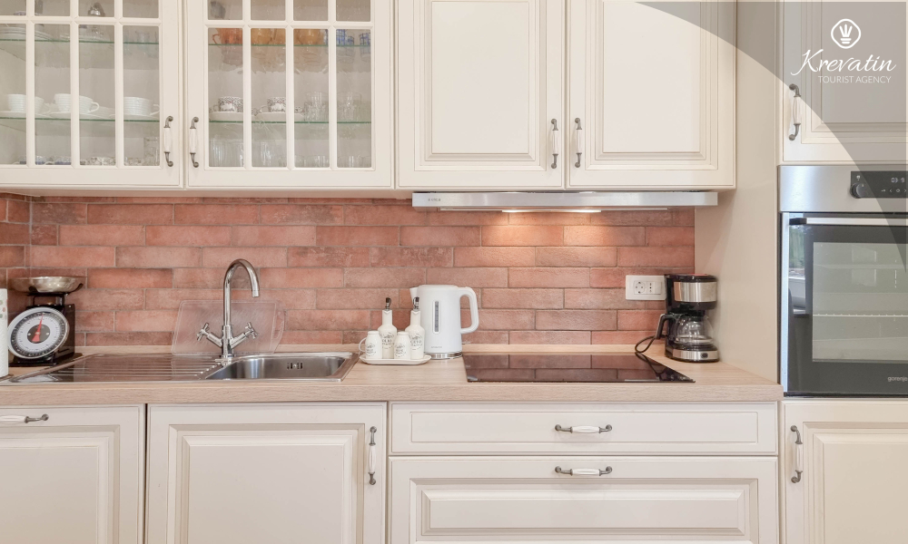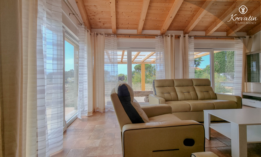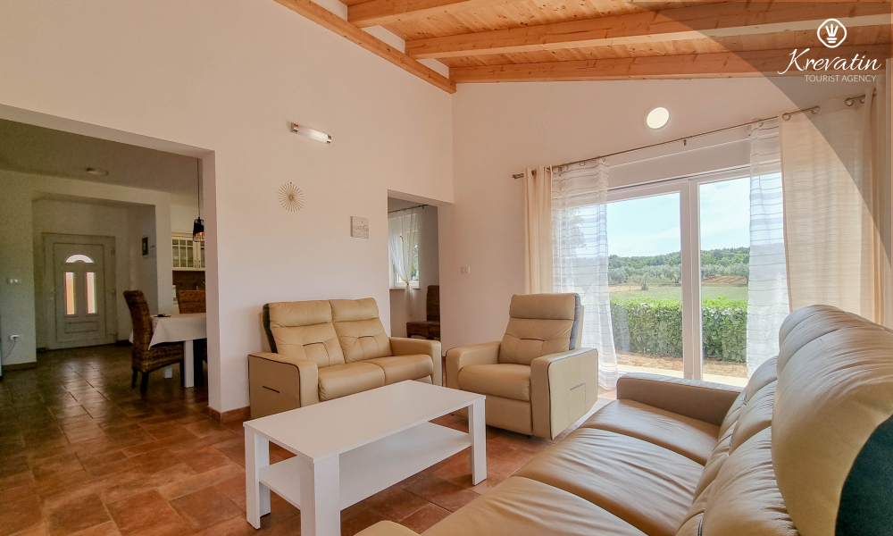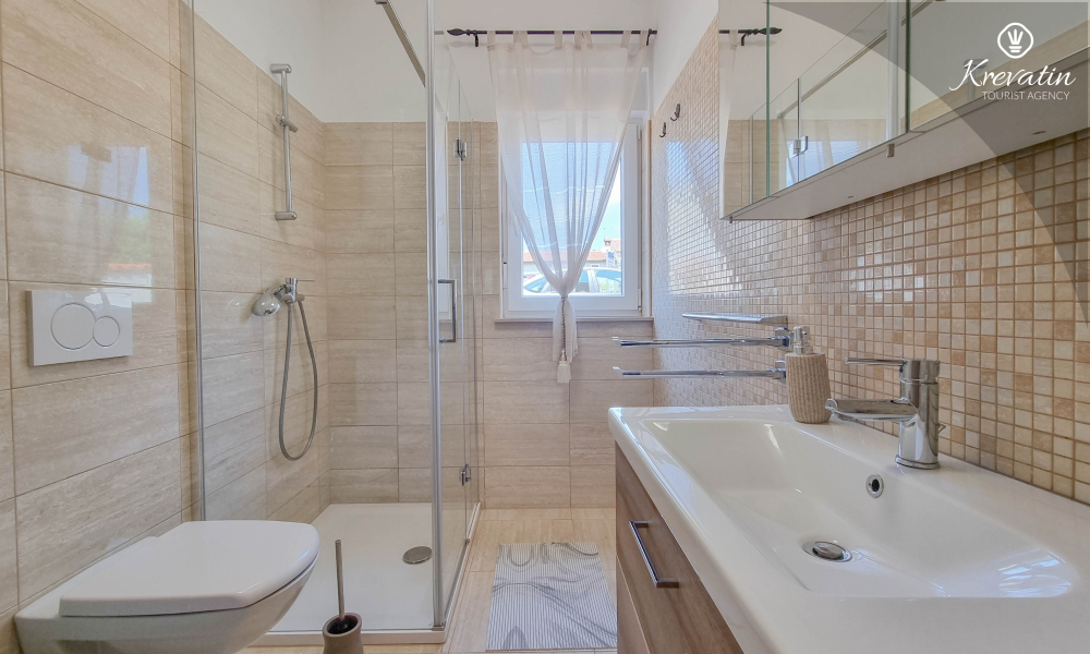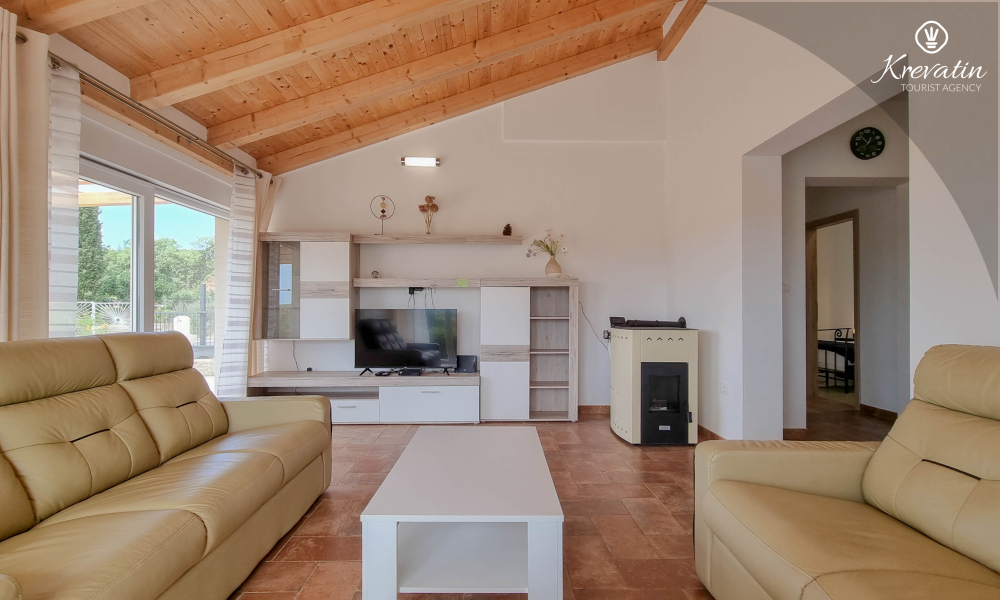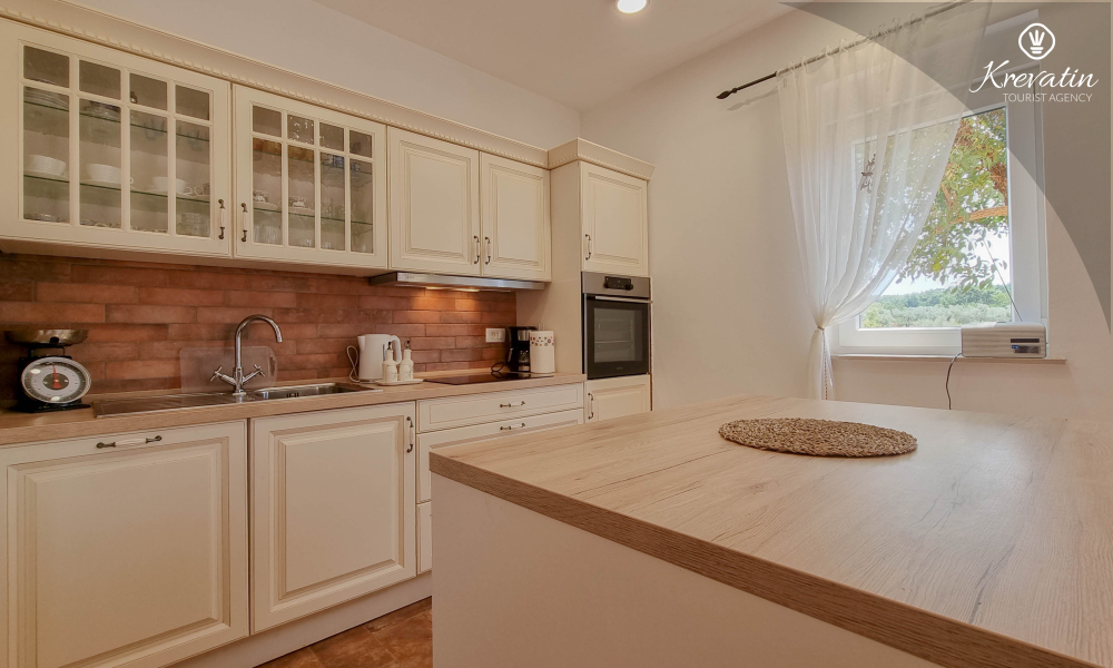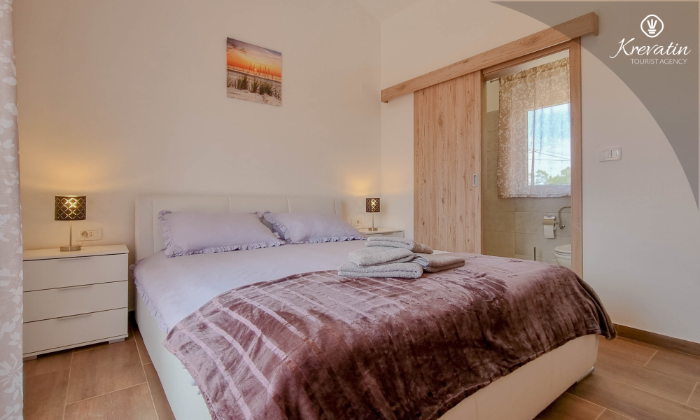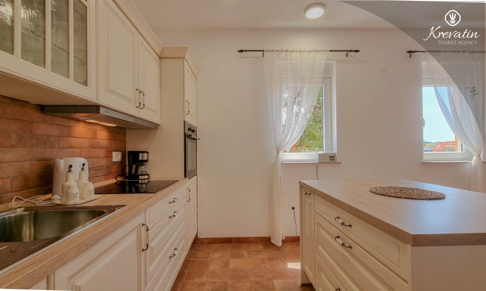 U prizemlju se nalazi prostrani dnevni boravak s blagovaonicom i kuhinjom, te dvije udobne spavaće sobe i kupaonica. Kuhinja je potpuno opremljena svim osnovnim stvarima. Na prvom katu su još dvije udobne spavaće sobe, svaka s vlastitom kupaonicom i klima uređajem. Na raspolaganju je i terasa s garniturom za sjedenje i pogledom na prostrani vrt okružen zelenilom.
