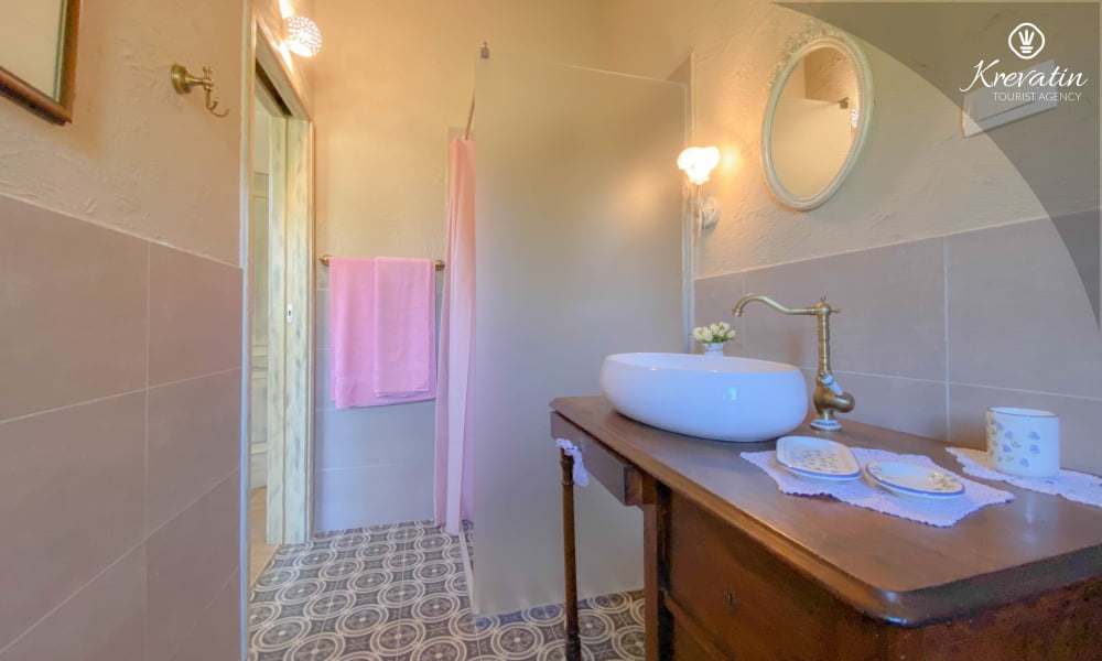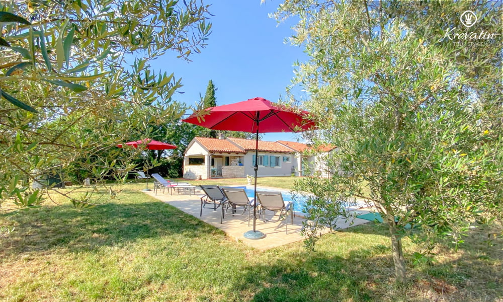 Vila prima do 8 gostiju, i ima tri udobne spavaće sobe s vlastitim kupaonicama koje jamče privatnost i komfor. Na raspolaganju je i prostrani dnevni boravak i potpuno opremljena kuhinja s blagovaonicom, a natkrivena terasa s roštiljem savršena je za jutarnje kave ili večernja druženja. Tu je i bazen s ležaljkama i suncobranima, vanjski tuš te velika okućnica za istinsko uživanje na otvorenom.
