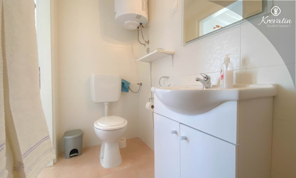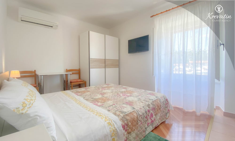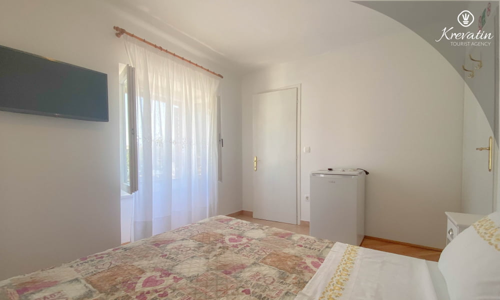 Udobna soba ima bračni krevet te ormar i mini hladnjak na raspolaganju. Tu je i praktična kupaonica s tušem i WC-om.