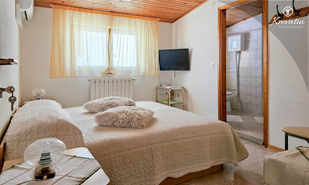 Soba je opremljena bračnim krevetom i privatnom kupaonicom s tuš kabinom, a na raspolaganju je i mini frižider, savršen za čuvanje osvježenja i laganih obroka.