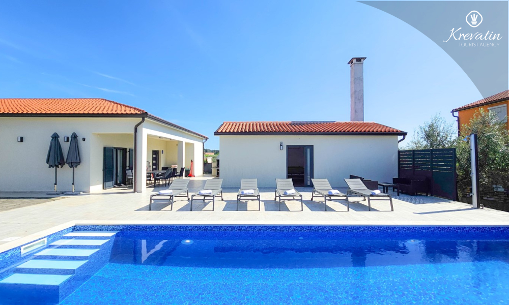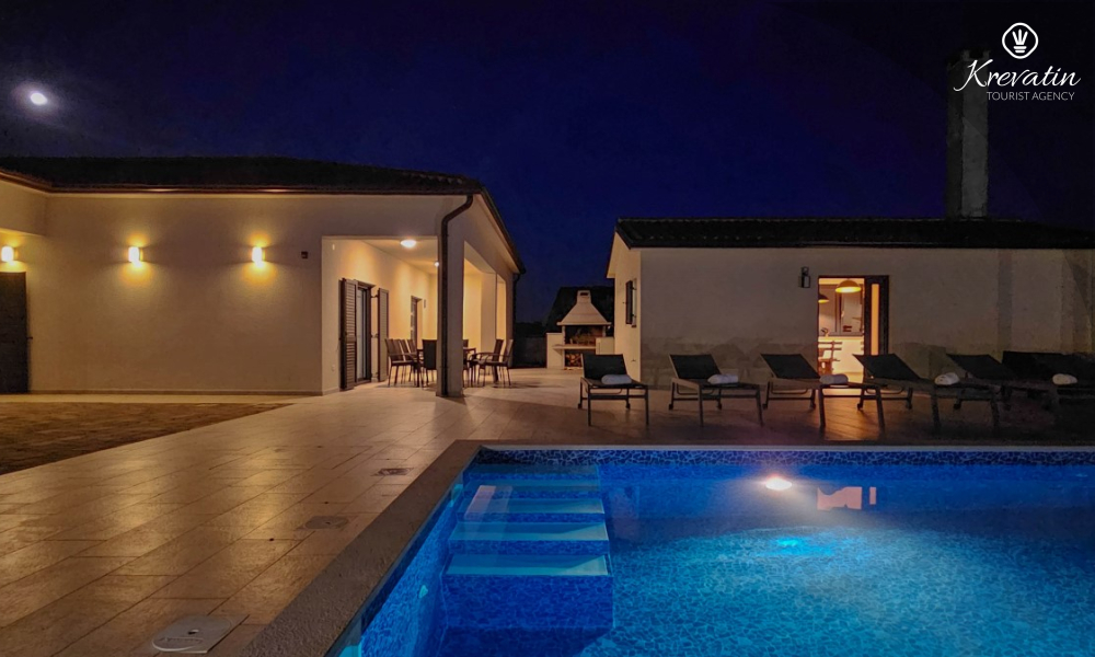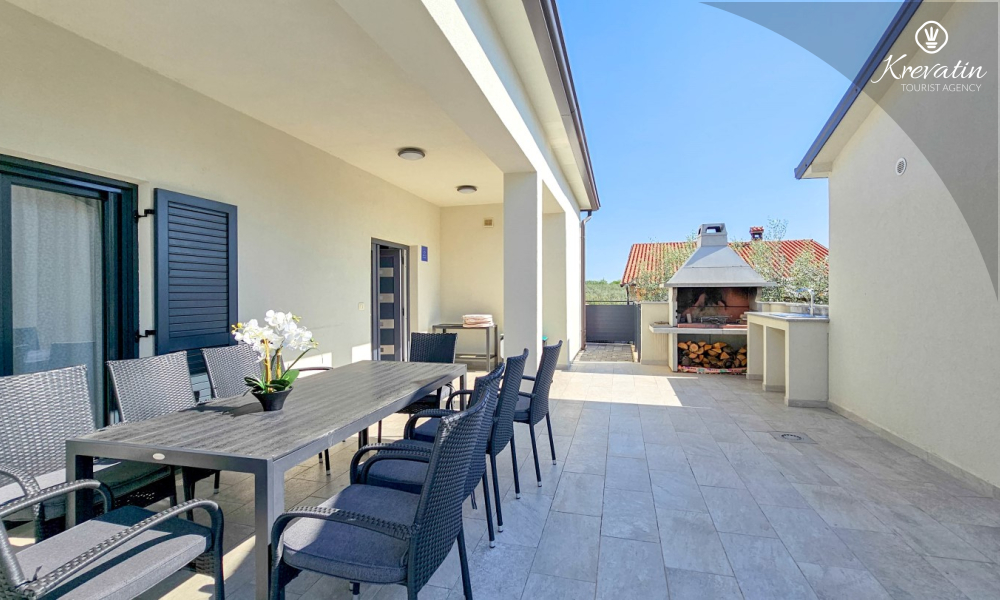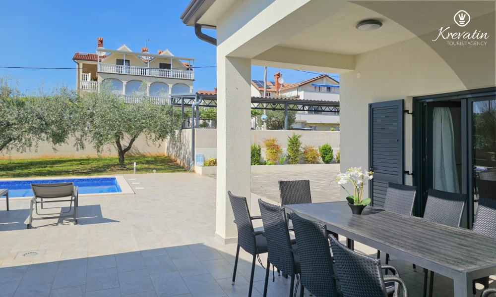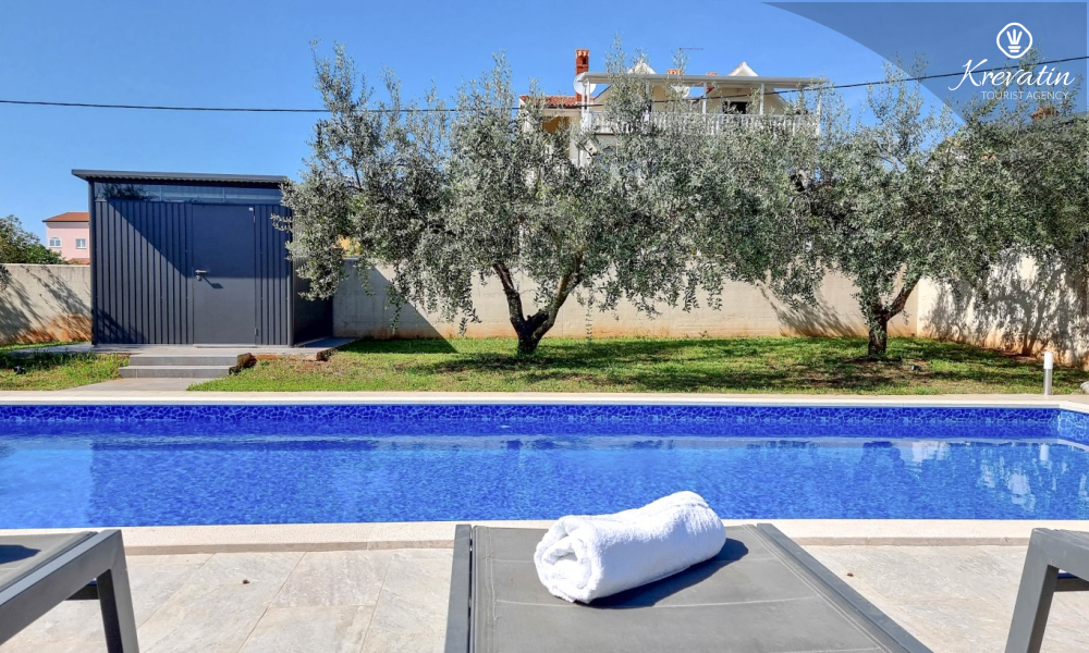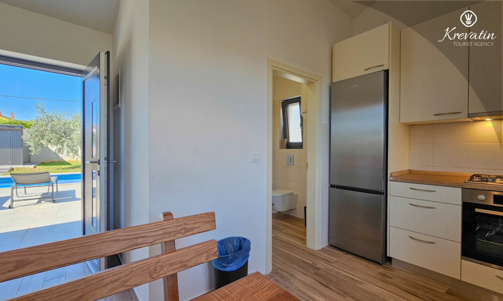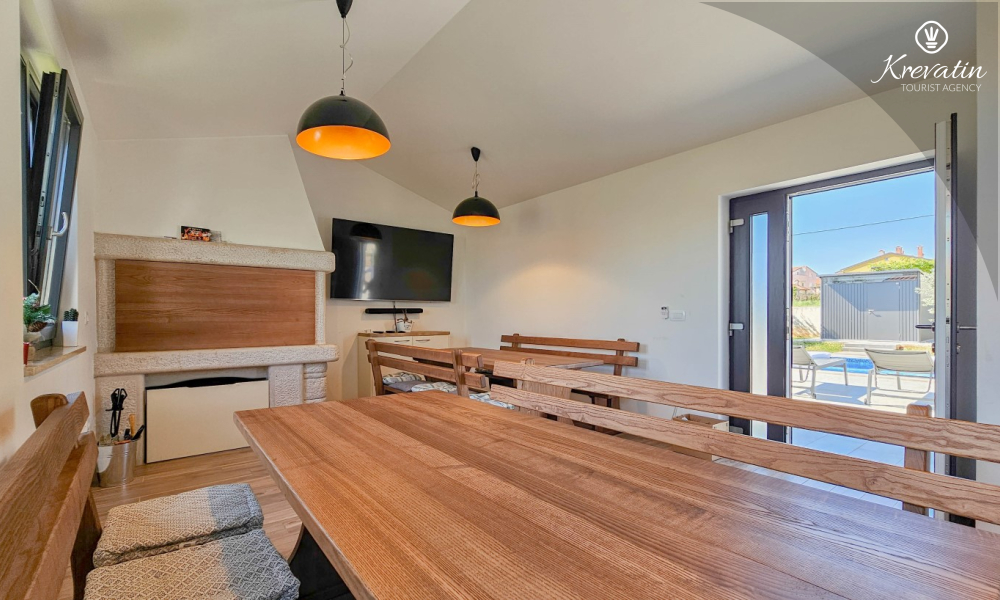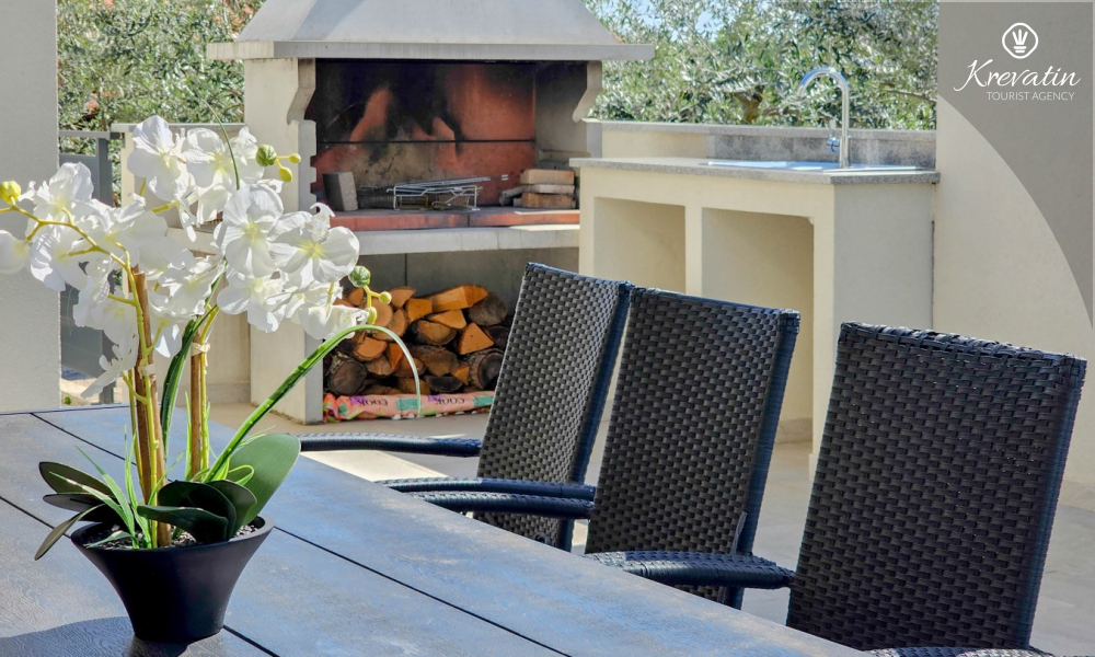 Kući također pripada velika terasa sa roštiljem, bazen za privatno korištenje te privatni parking. SAT-TV, klima, WLAN, posteljina i ručnici su uključeni u cijenu. Kućni ljubimci nisu dozvoljeni. Potreban je depozit od 400 eura.
