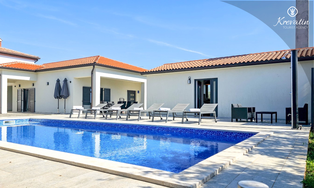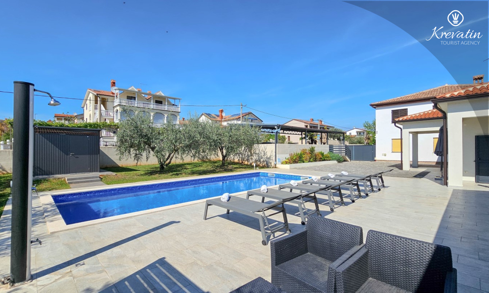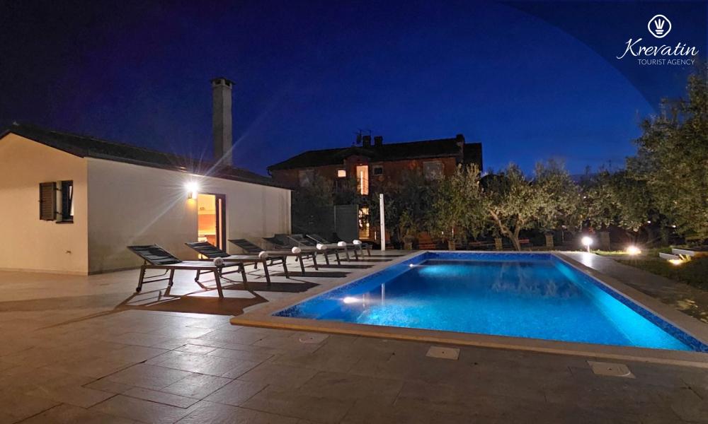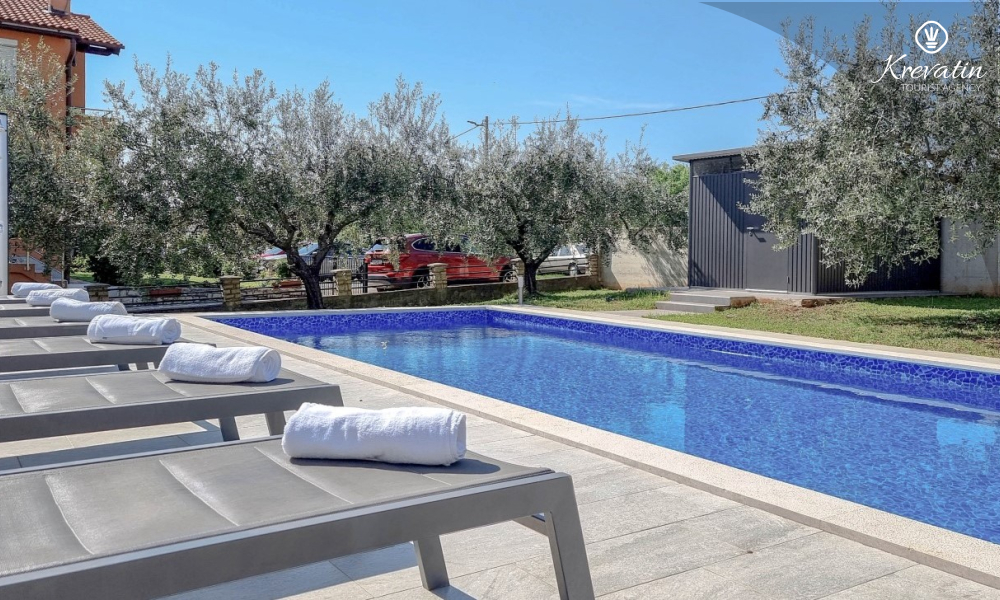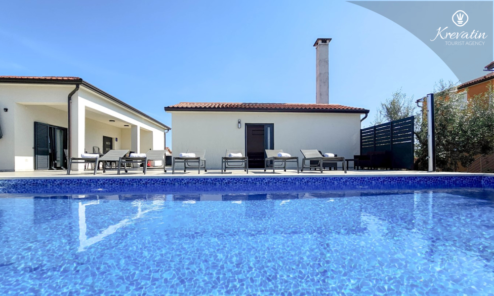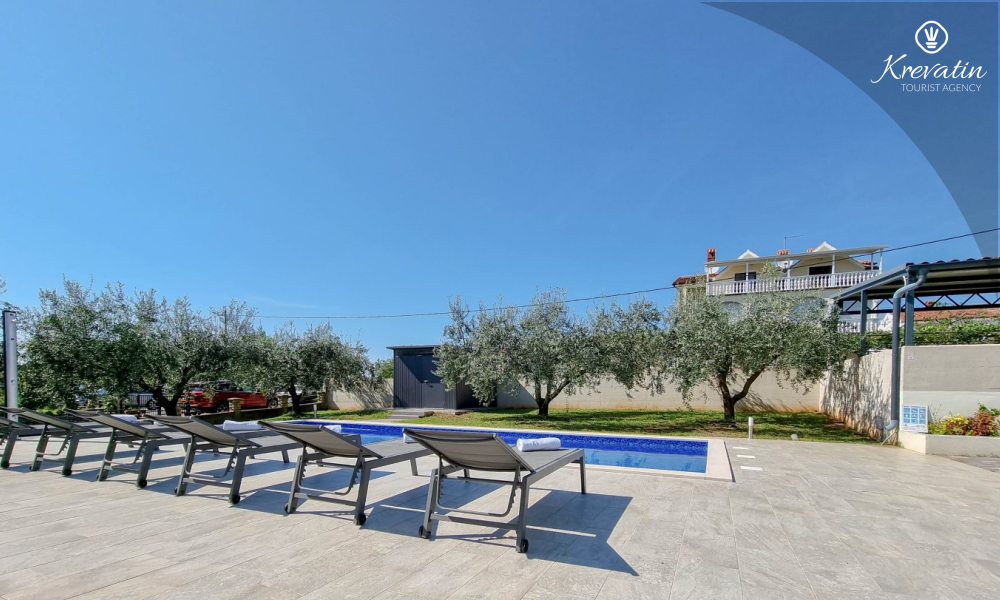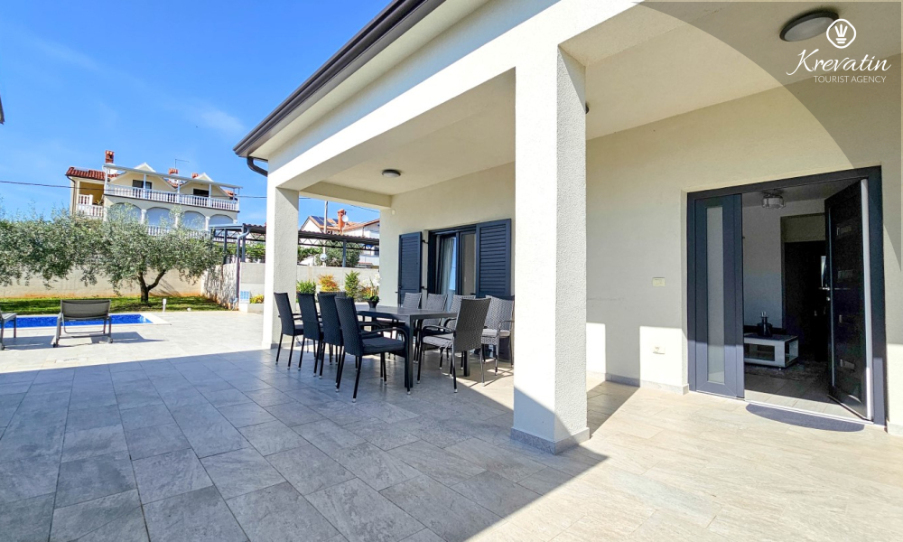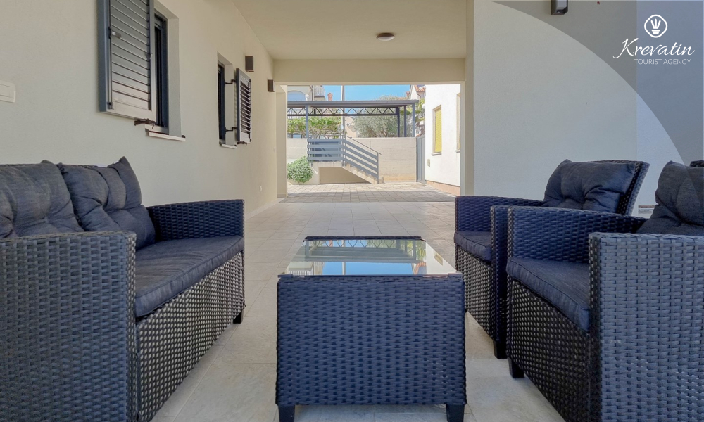 Kući također pripada velika terasa sa roštiljem, bazen za privatno korištenje te privatni parking. SAT-TV, klima, WLAN, posteljina i ručnici su uključeni u cijenu. Kućni ljubimci nisu dozvoljeni. Potreban je depozit od 400 eura.