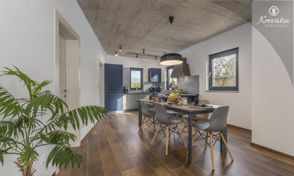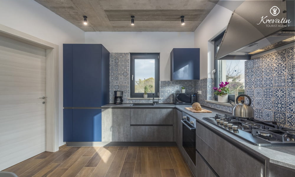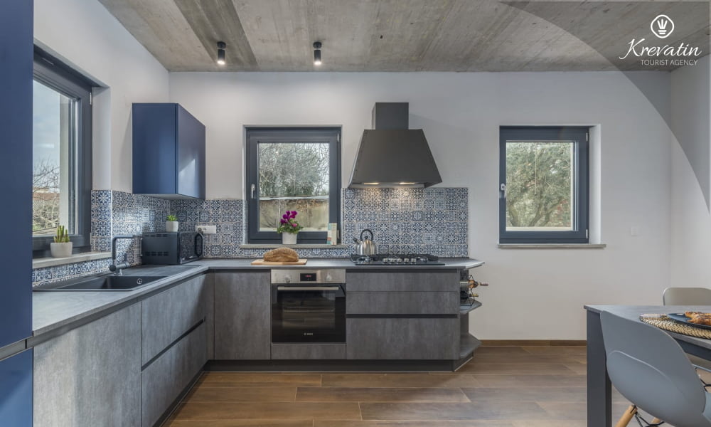 Casa Gabriela nalazi se na dvije etaže i ima površinu od 140m2. U prizemlju se nalazi prostrani dnevni boravak povezan s kuhinjom. Kuhinja je moderno opremljena i ima električni štednjak, pećnicu, hladnjak,