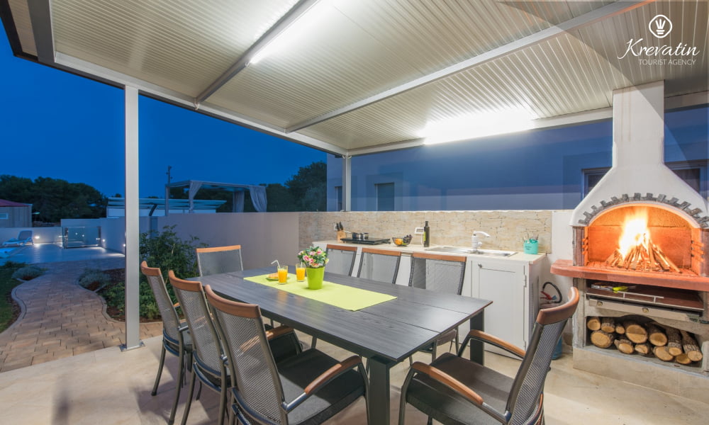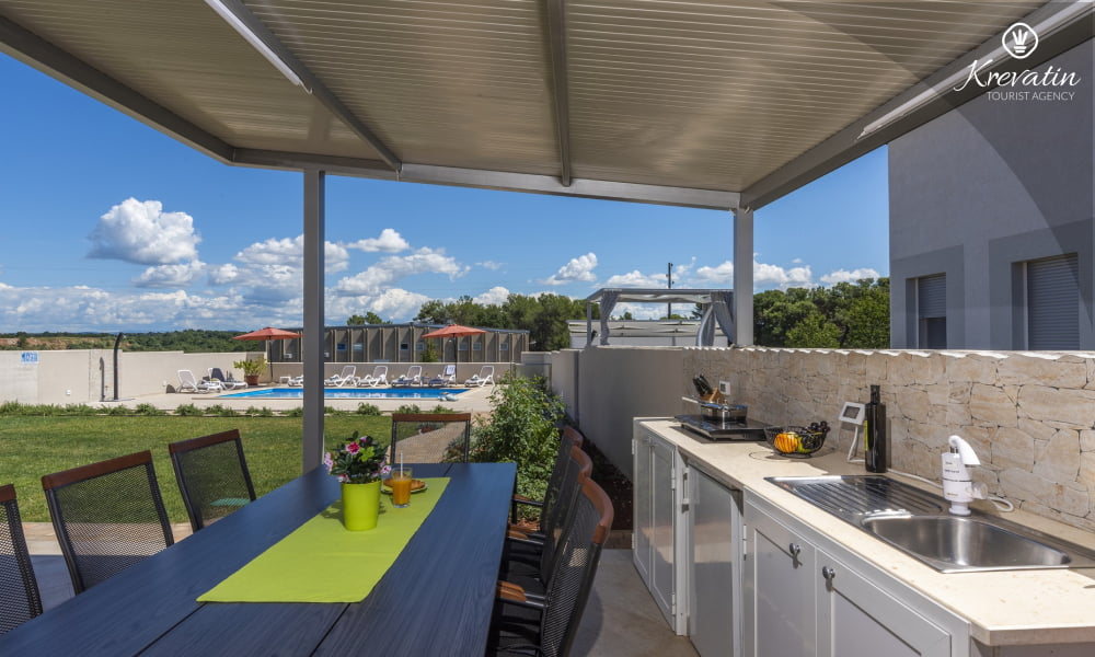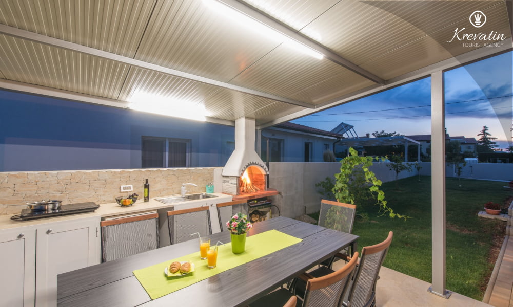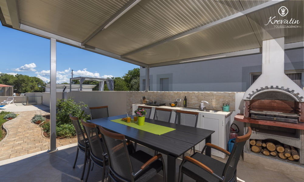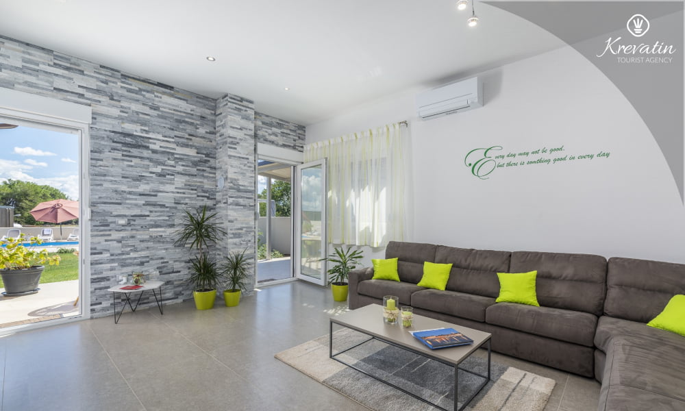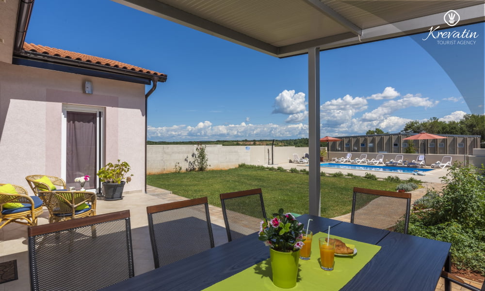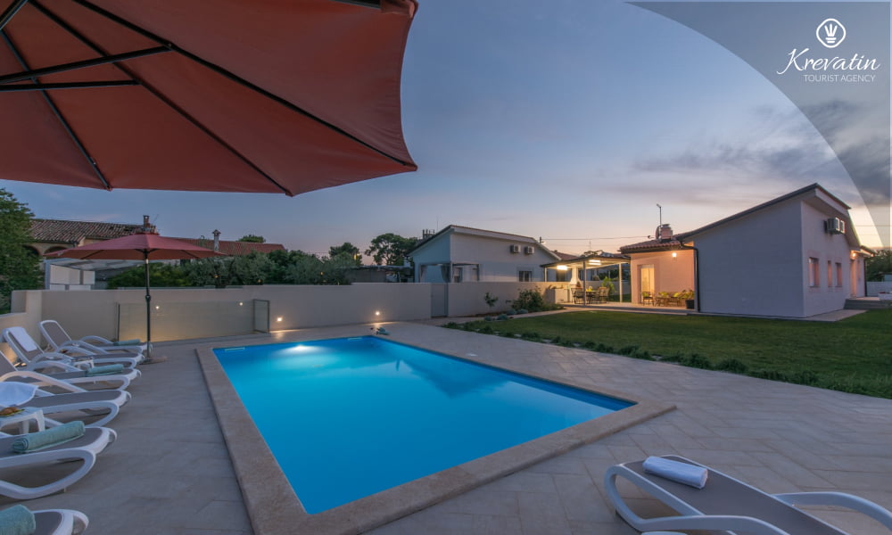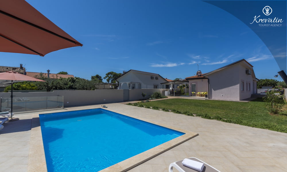 Villa Lucio je kuća sa četiri spavaće sobe u prizemlju i ima površinu od 130m2. Ima prostrani dnevni boravak i kuhinju s blagovaonicom. Kuhinja je moderno opremljena i ima električni štednjak, pećnicu, hladnjak, perilicu posuđa, mikrovalnu pećnicu i aparat za kavu. Postoje četiri dvokrevetne sobe, svaka sa SAT-TV-om i klima uređajem. Postoje četiri kupaonice, tri s tušem i WC-om i jedna samo s WC-om. Vila ima prostrani vrt (700m2), ljetnu kuhinju s roštiljem, vanjskim namještajem i dnevnim boravkom. Tu je i privatni bazen. Privatni parking, SAT TV, klima uređaj, perilica rublja, perilica suđa, internet i bazen uključeni su u cijenu. Kućni ljubimci su dozvoljeni uz nadoplatu.